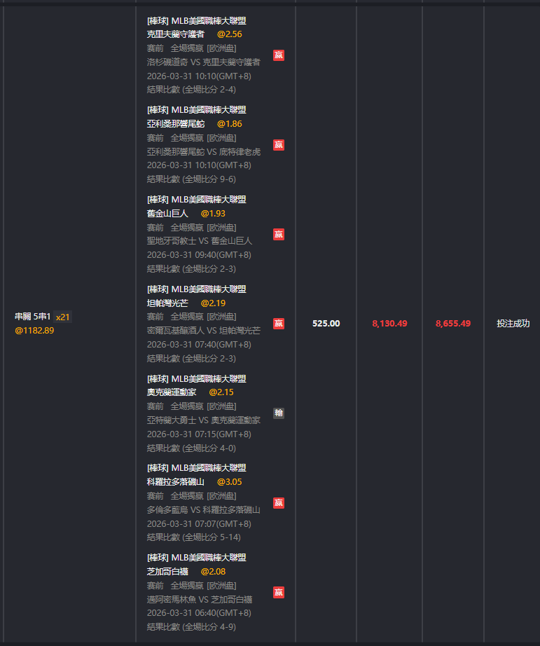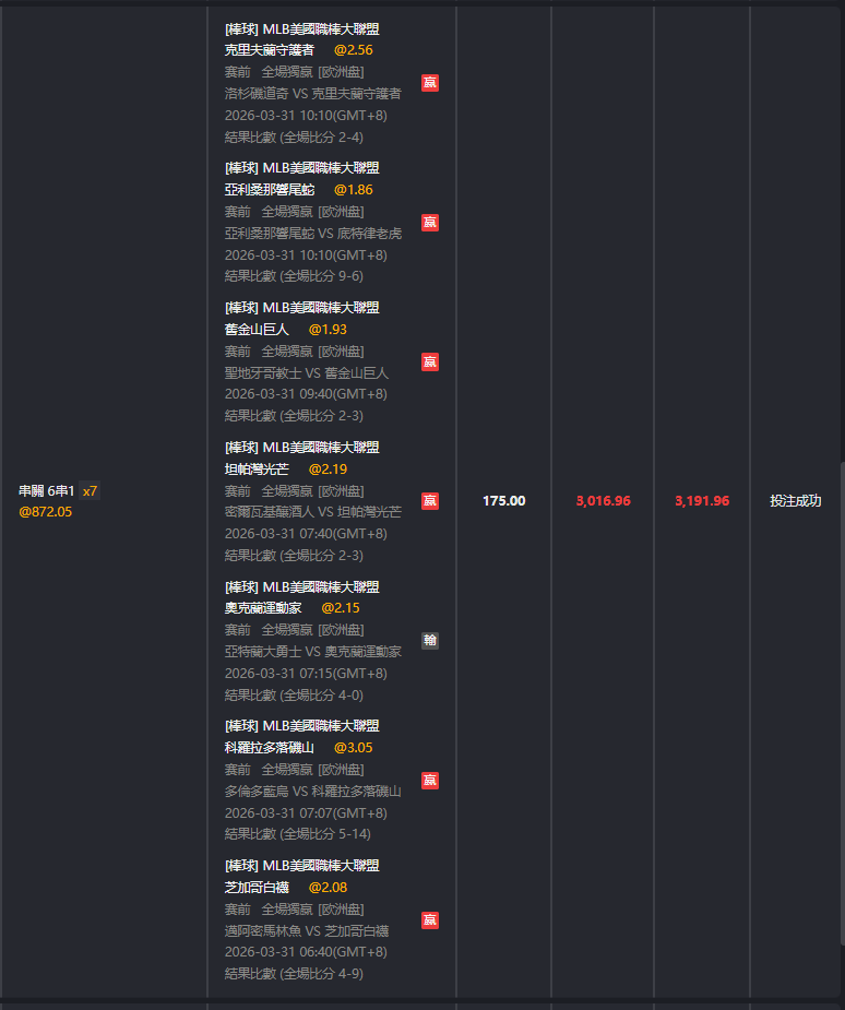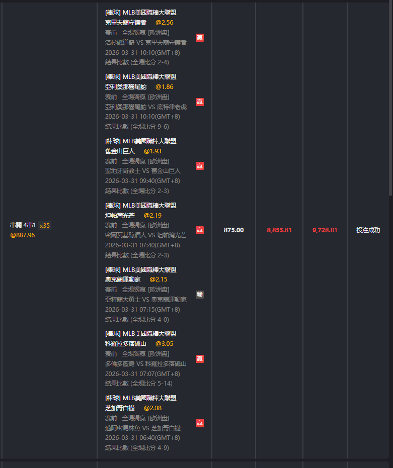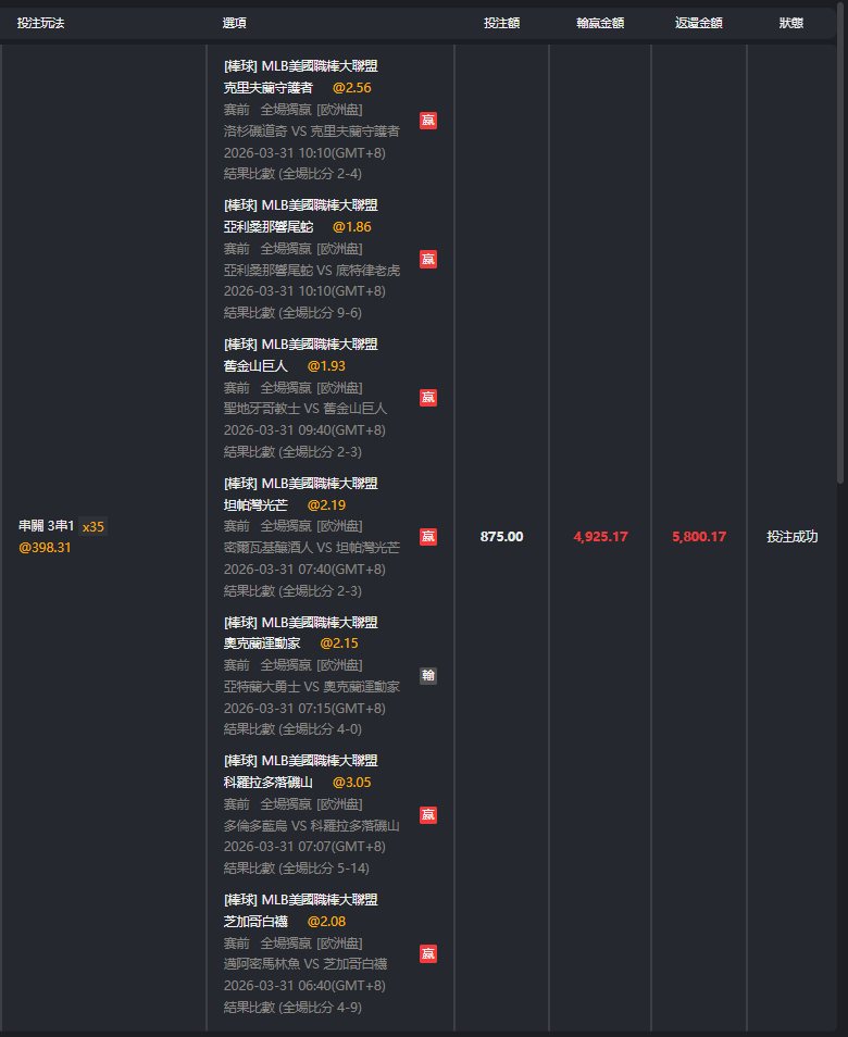 >> 3/31 MLB 七關過六關