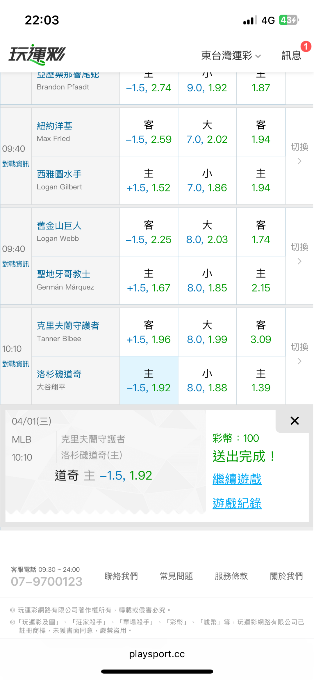 MLB >> 4/1東台mlb國際盤【主推近6日過4】主推信心滿滿(貓場)特價用完了 喜歡的跟上東台~