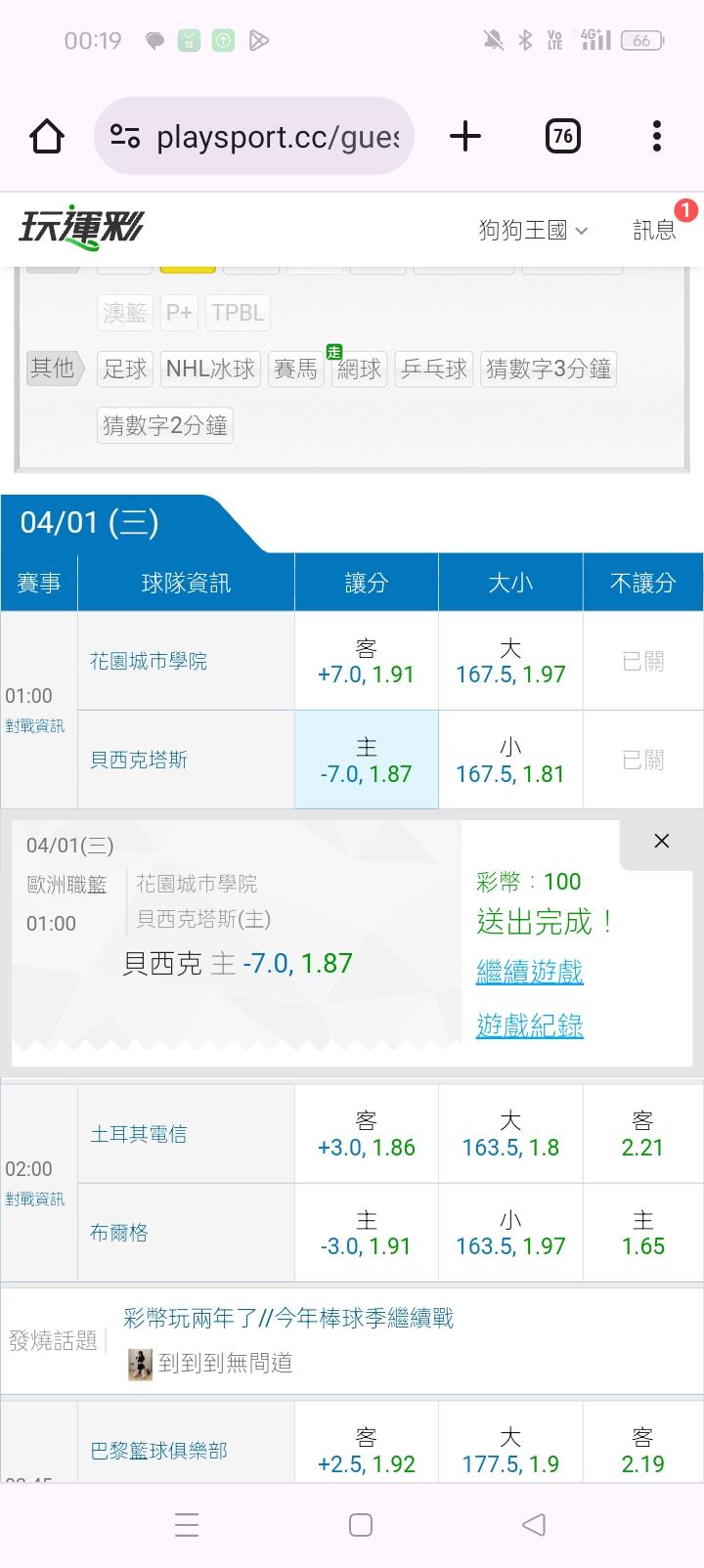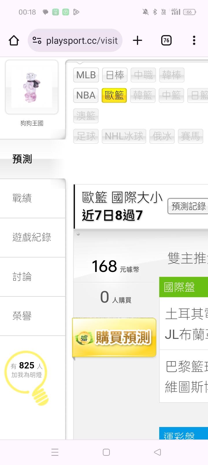 歐洲職籃 >> 歐洲籃球大小分主推四連勝,近七天8過7咬莊家(雙主推決勝負)