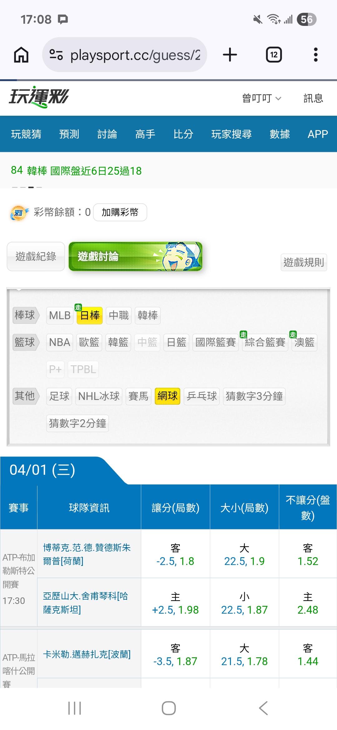 網球 >> 4/1 ATP、WTA 網球公開賽