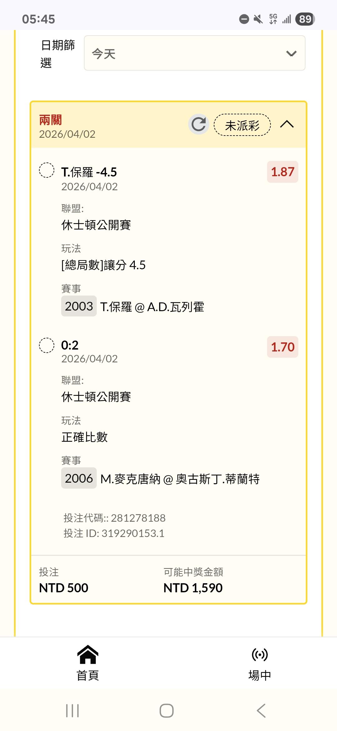 網球 >> 4/1 ATP、WTA 網球公開賽