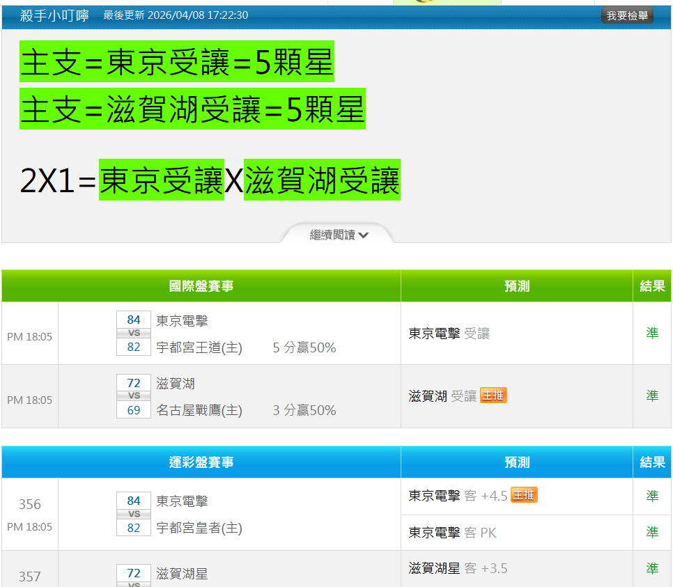 日本職籃 >> 4/01【國際 主推連過6日】【國際近6日16過13】【小叮嚀2X1過關】大分版路推薦!