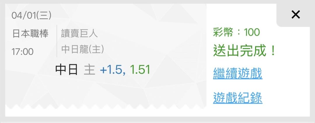 日本職棒 >> 昨日運彩盤6過5今天龍之子是否能喜獲勝投呢?讓我們拭目以待!依舊特價了!