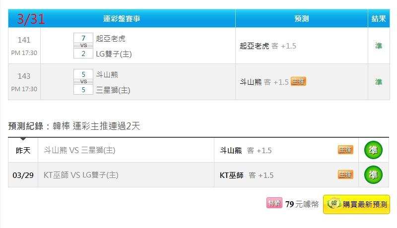 韓國職棒 >> 4/1韓棒運彩主推連過2天 昨天運彩盤2過2全過 穩定獲利高勝率 繼續特價販售 有興趣歡迎參考合牌
