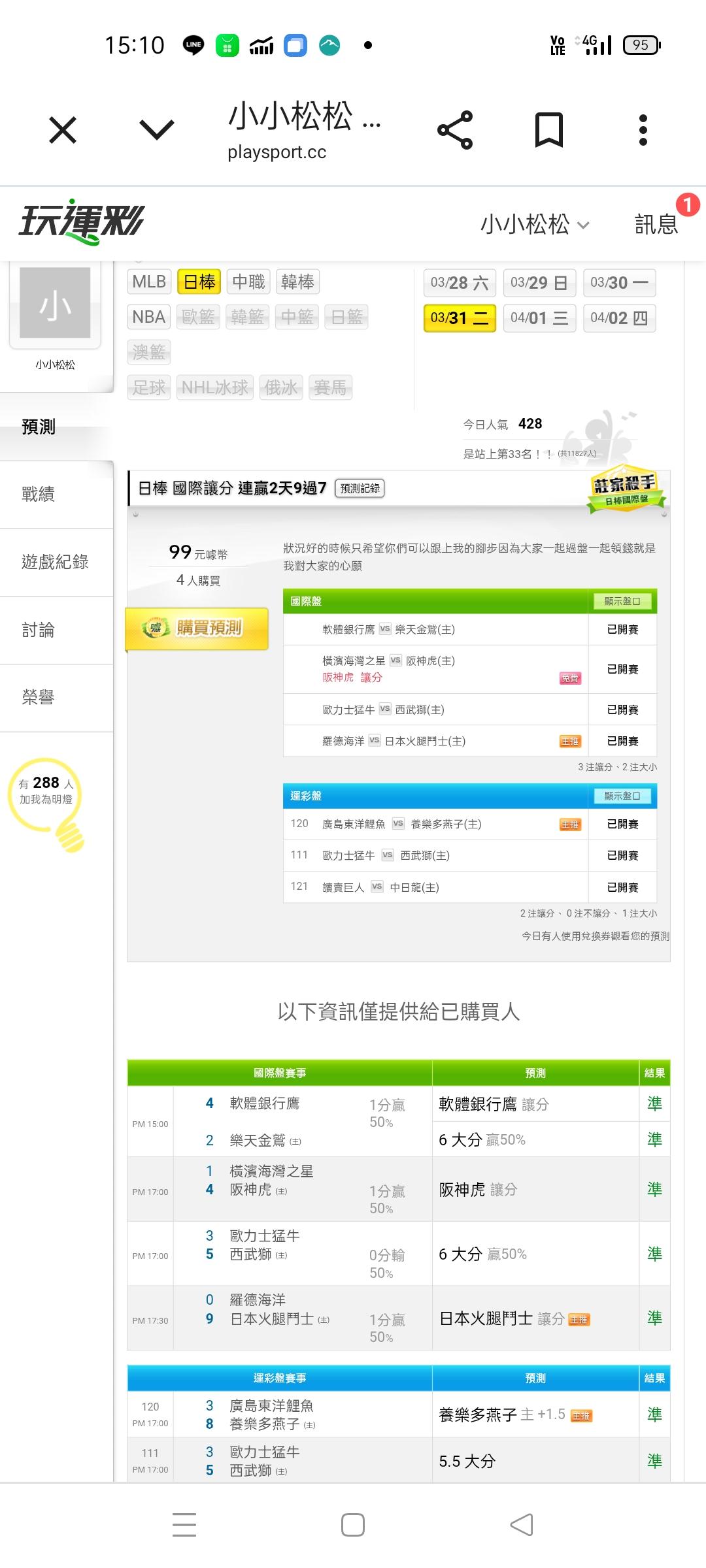 日本職棒 >> 首先先恭喜台灣選手徐若曦得勝我早上就跟你們說過了讓分盤大小分通通過盤再過兩小時我的主推等你們參考