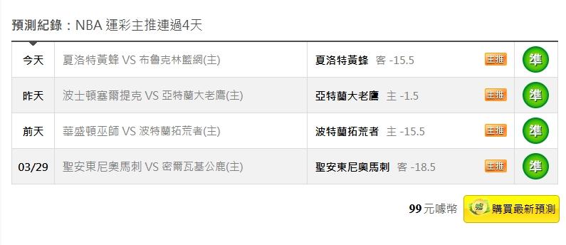 >> 4/2NBA運彩主推連過4天 今天國際盤2過2全過 雙盤7過6 今天分析文推薦單場:火箭受讓倒抓到
