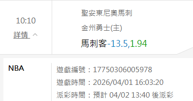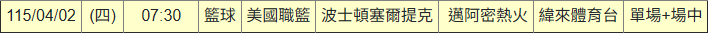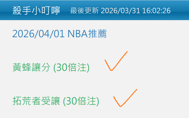 NBA >> 4/02 NBA推薦【今日國際盤 2過2】【小叮嚀有注數推薦】【內附台灣運彩單場】【今日特價】