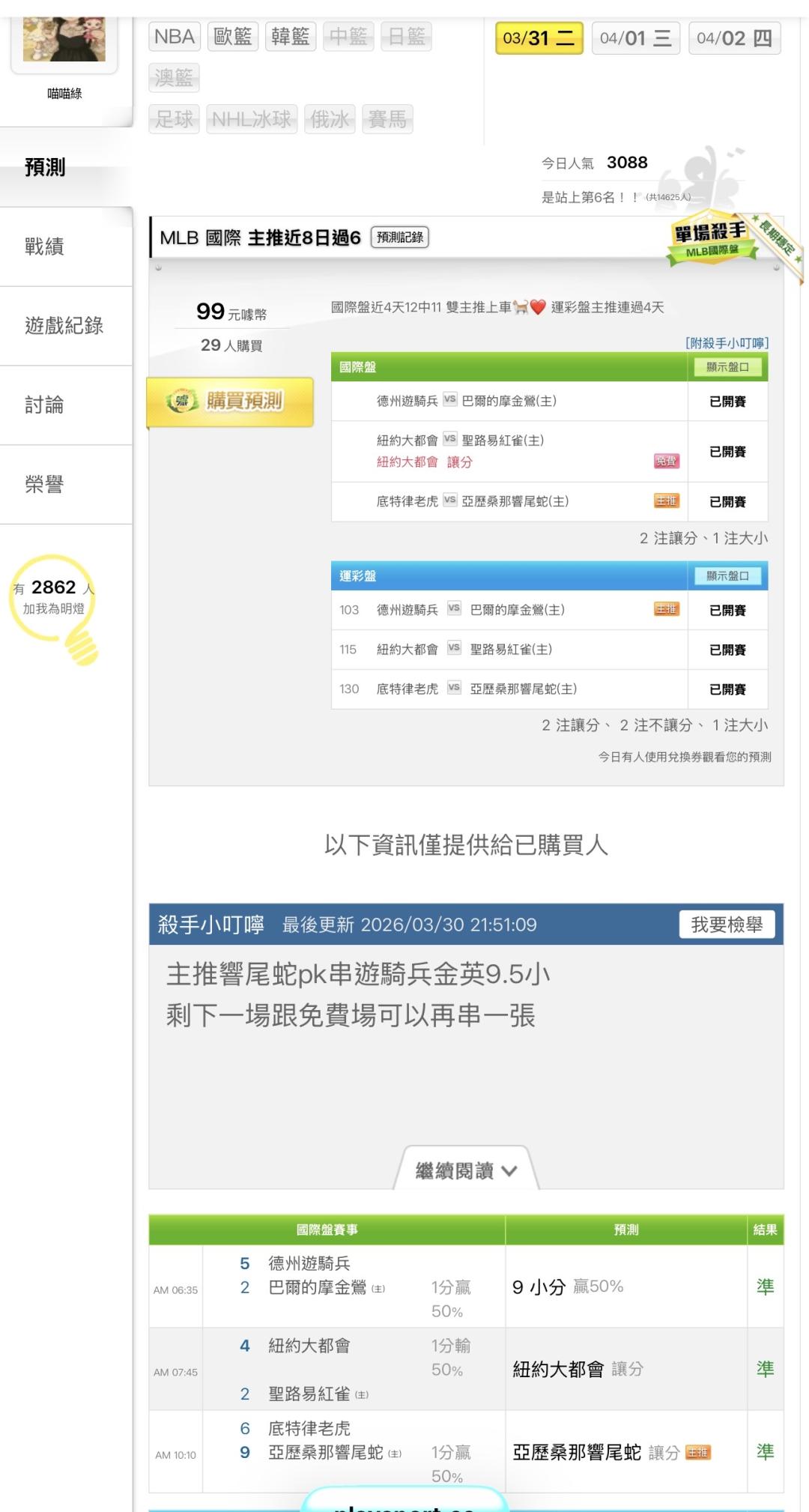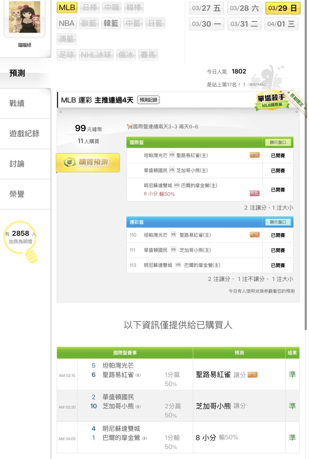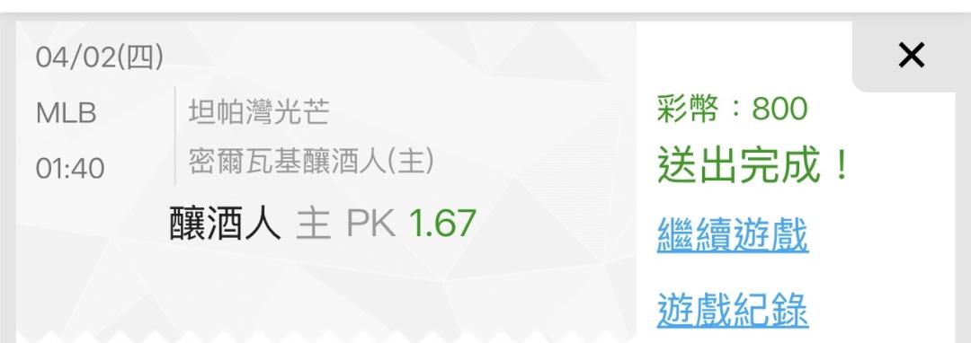 MLB >> 🐈の威鋼單場坦帕灣光芒@密爾瓦基釀酒人國際盤六天 18中16