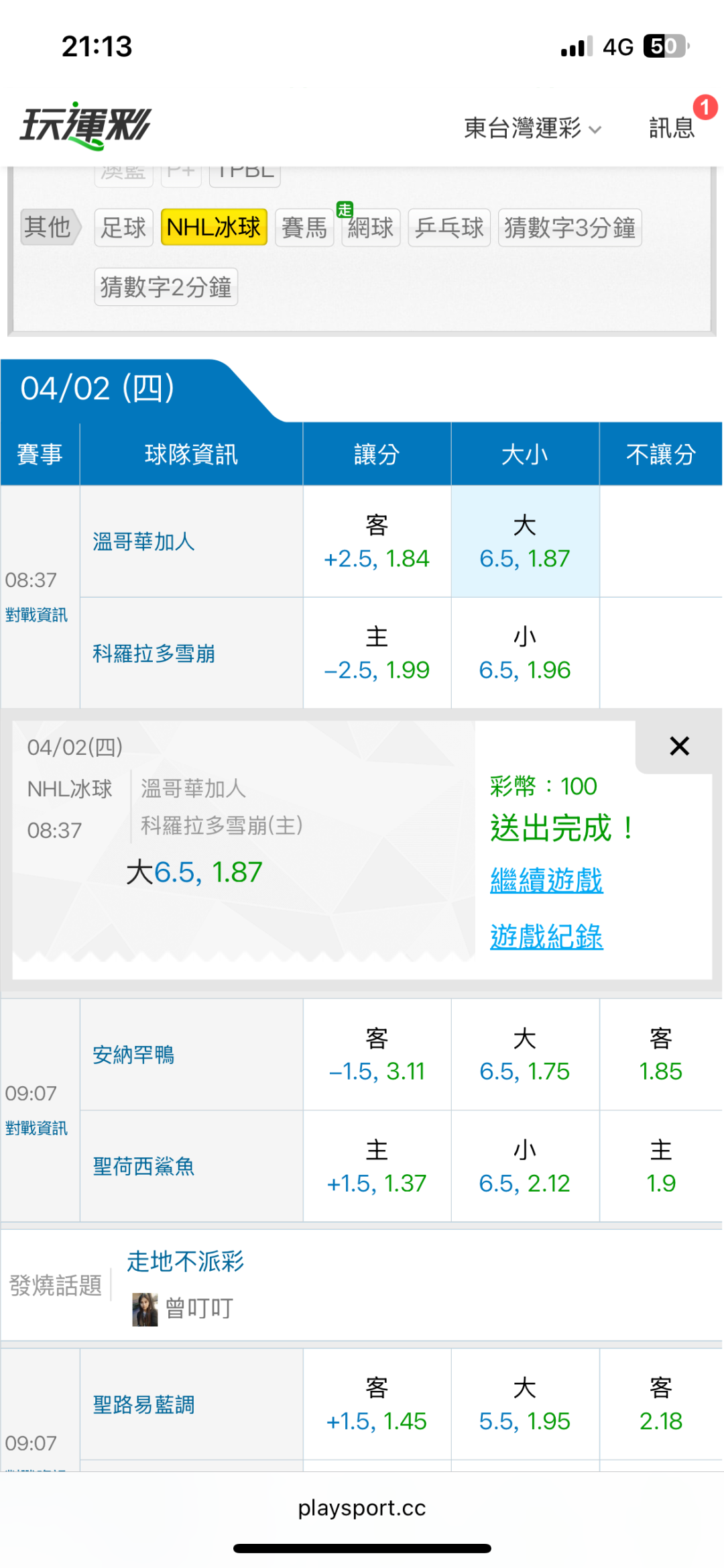 >> 4/2東台NHL國際盤【近26日贏23日】主推信心滿滿(貓場)特價用完了 喜歡的跟上東台~