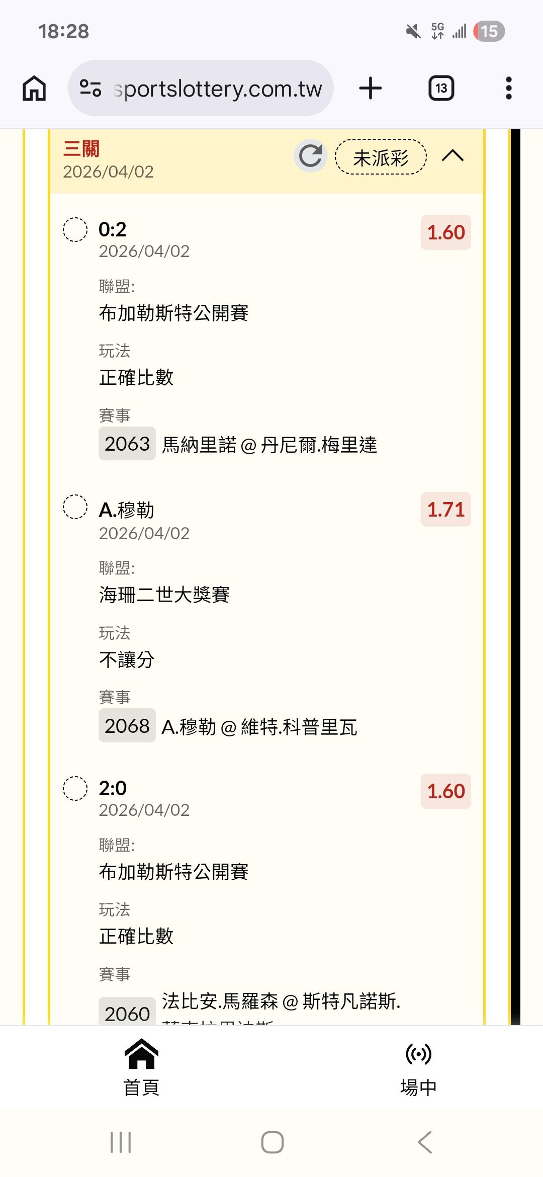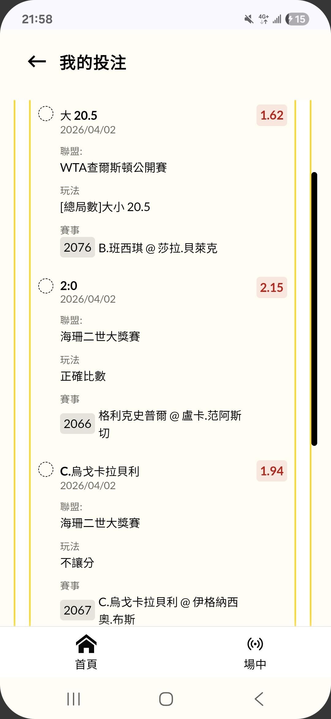 網球 >> 4/2 ATP、WTA 網球公開賽