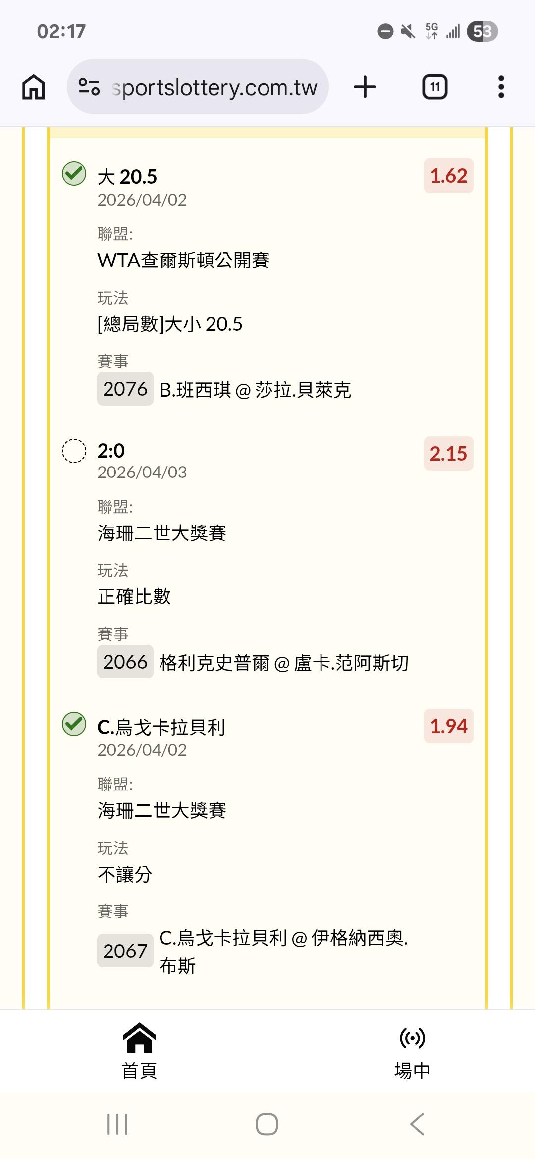網球 >> 4/2 ATP、WTA 網球公開賽