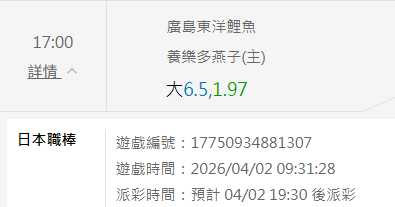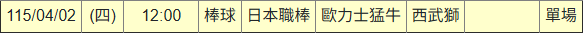 日本職棒 >> 4/02 NPB推薦【前日國際盤 4過4 全壘打】【小叮嚀有注數推薦】【內附台灣運彩單場】