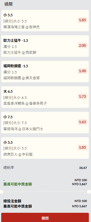日本職棒 >> 4/2 日本職棒 6*1 分享!!!