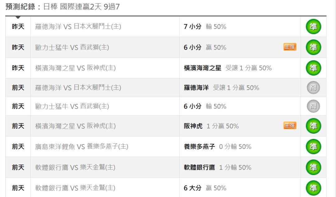 日本職棒 >> 日棒分享一場(國際 連贏2天 9過7,國際 主推連過3日)