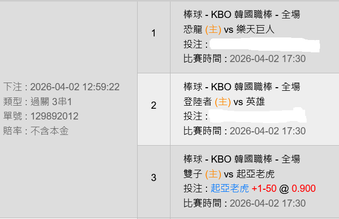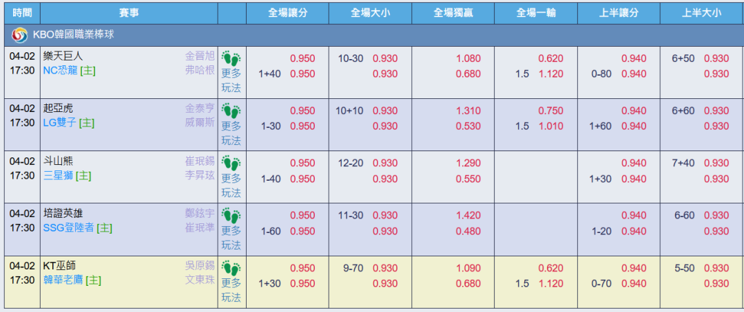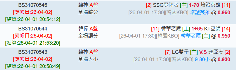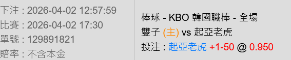 韓國職棒 >> 4/02【國際3過2】【小叮嚀2X1過關】【國際 連贏2天 5過4】受讓推薦!