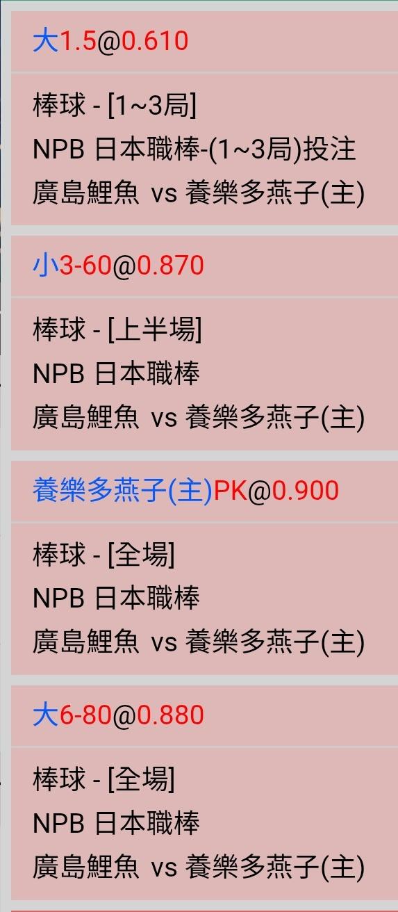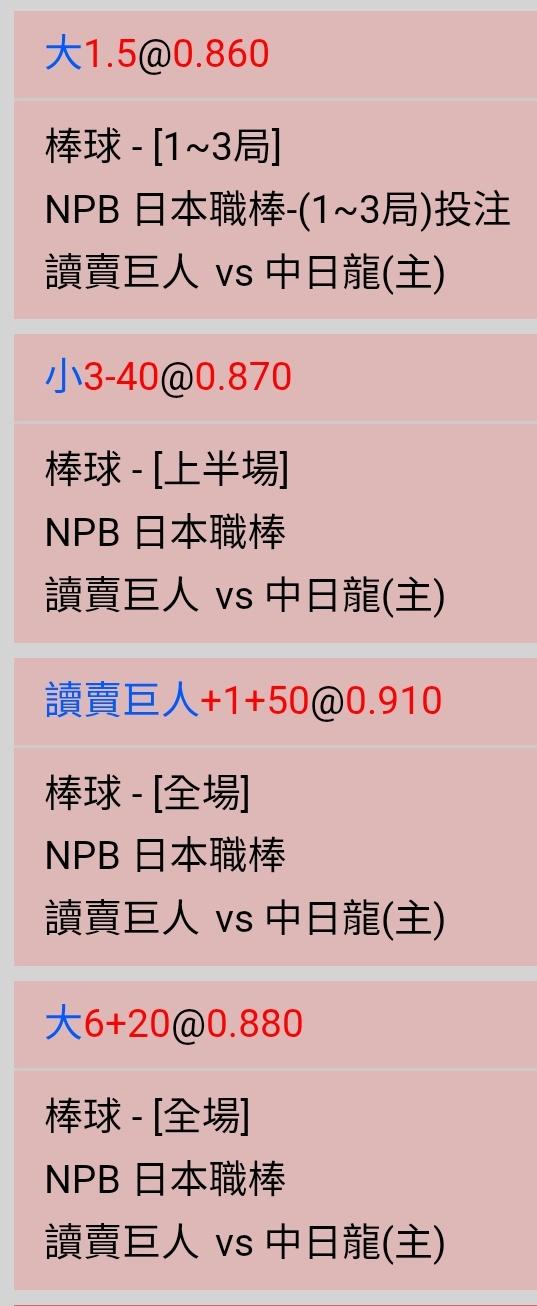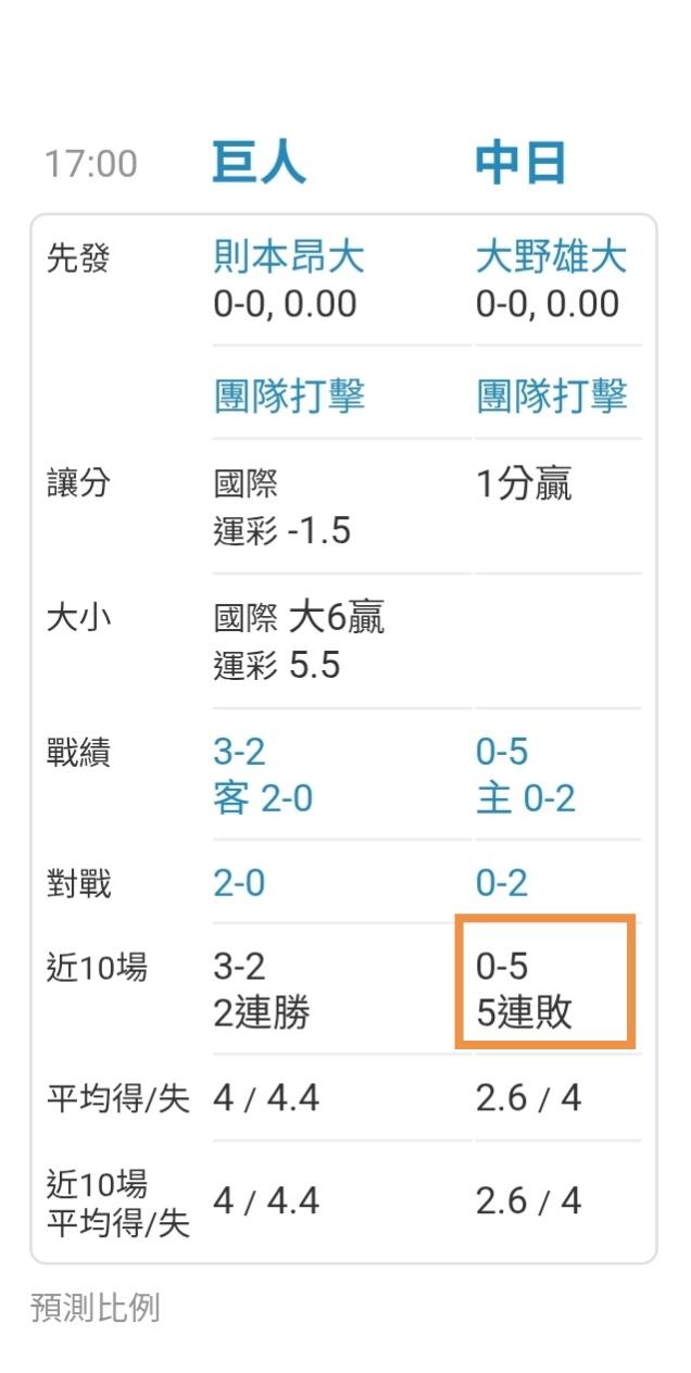 5連敗,對家養全家,選巨人跟4連勝的養樂多一起上菜,輸贏自負