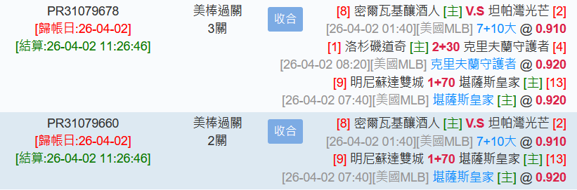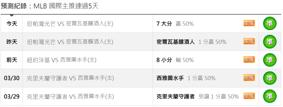 MLB >> 4/03【國際 主推連過5天】【小叮嚀2X1+3X1過關】緯來+台彩單場小分推薦!!