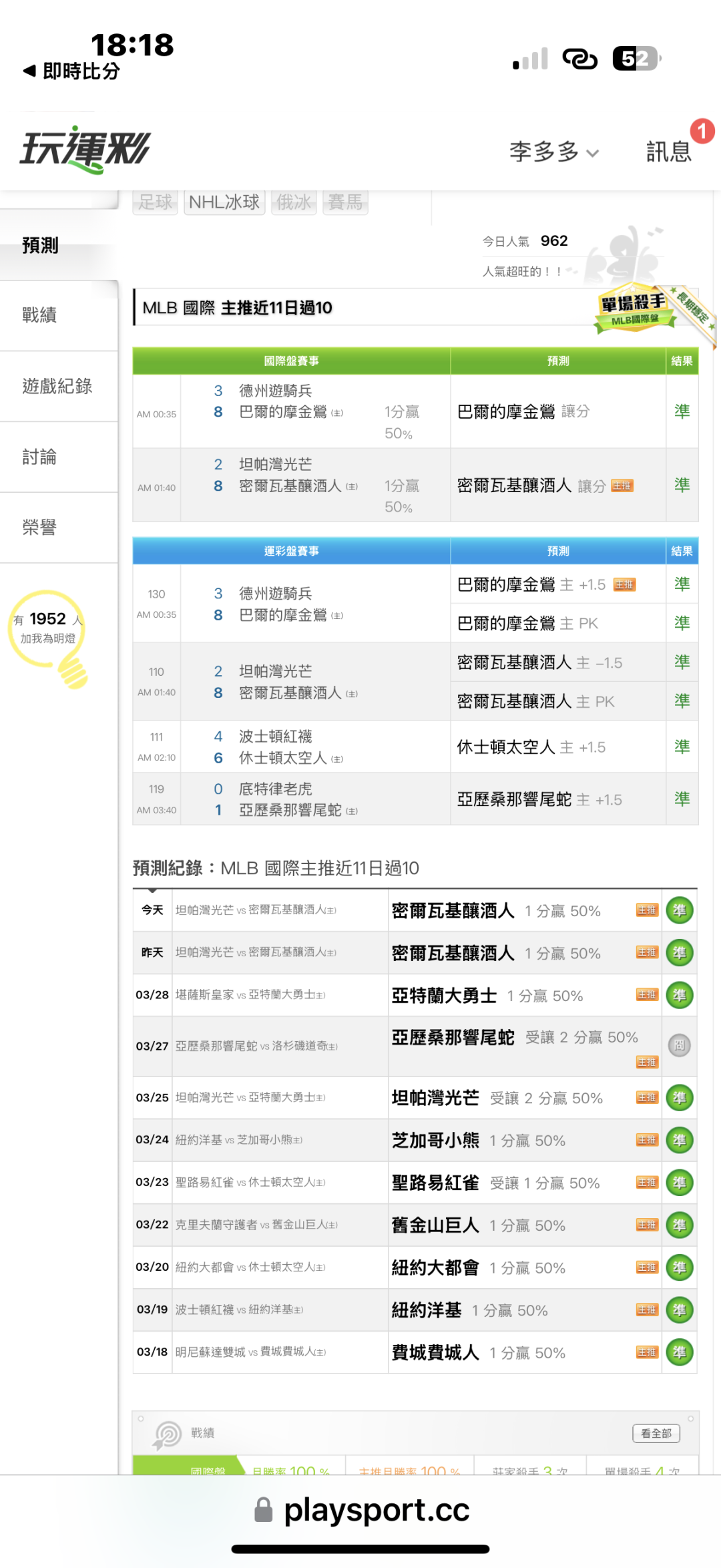 MLB >> 主推近11過10!連勝中 參考看看