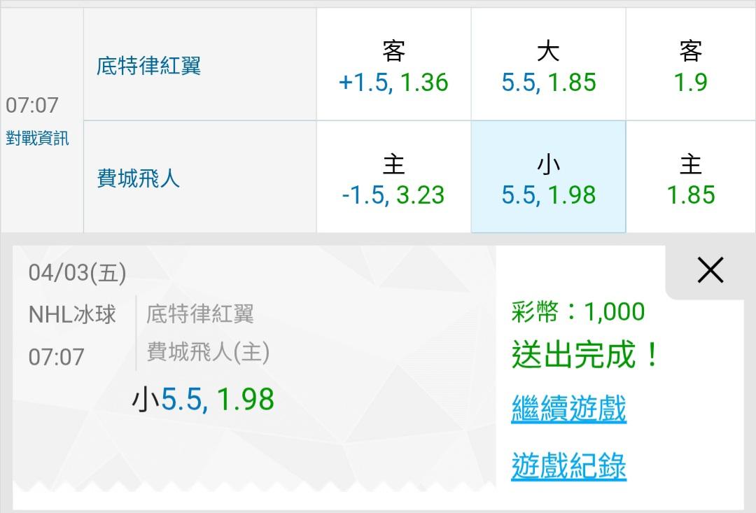 NHL冰球 >> 今天主推又收了【主推20連勝】【主推20連勝】