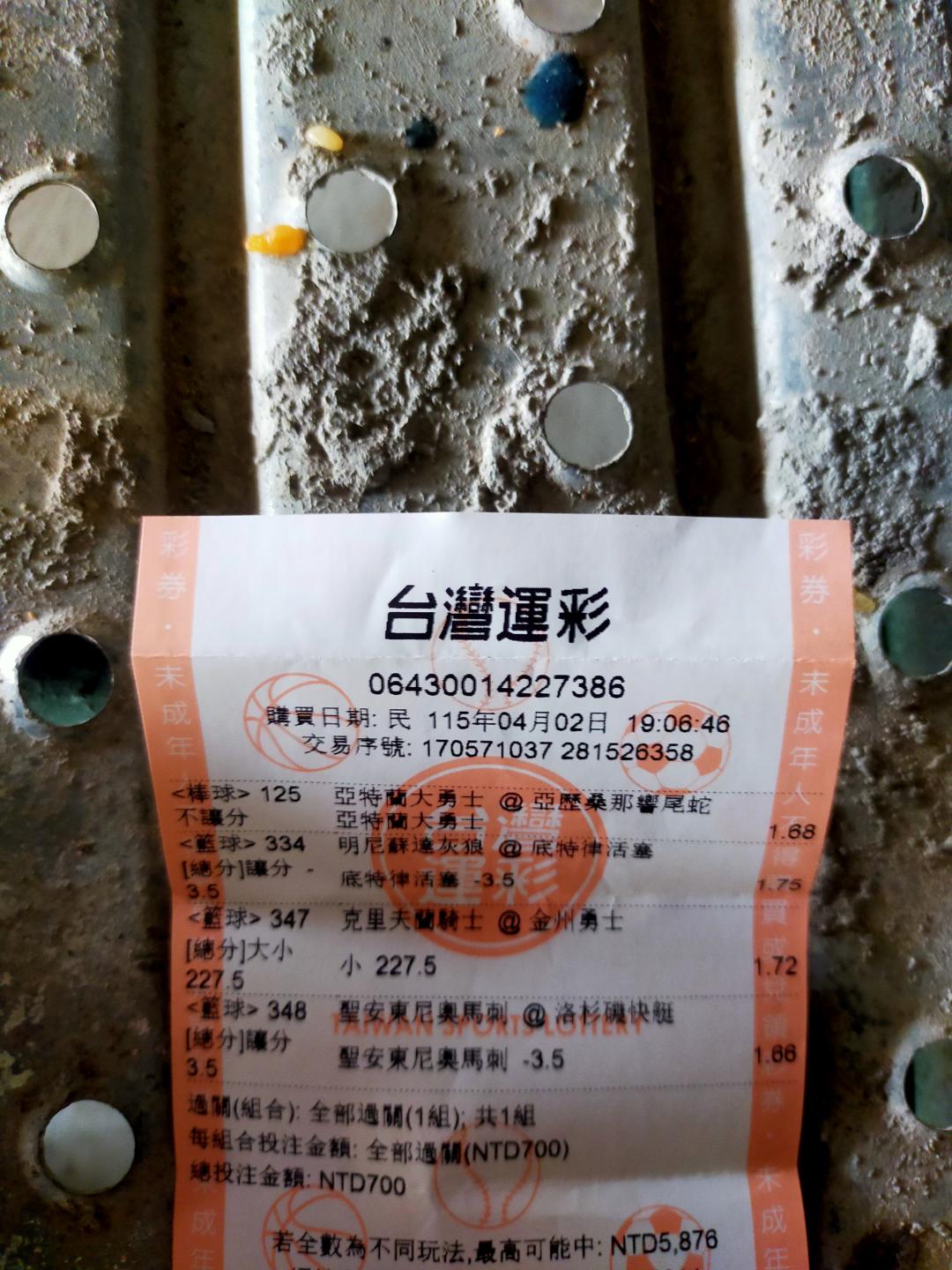 剛剛去彩券行買明天的賽事順便買一張刮刮樂200的中500