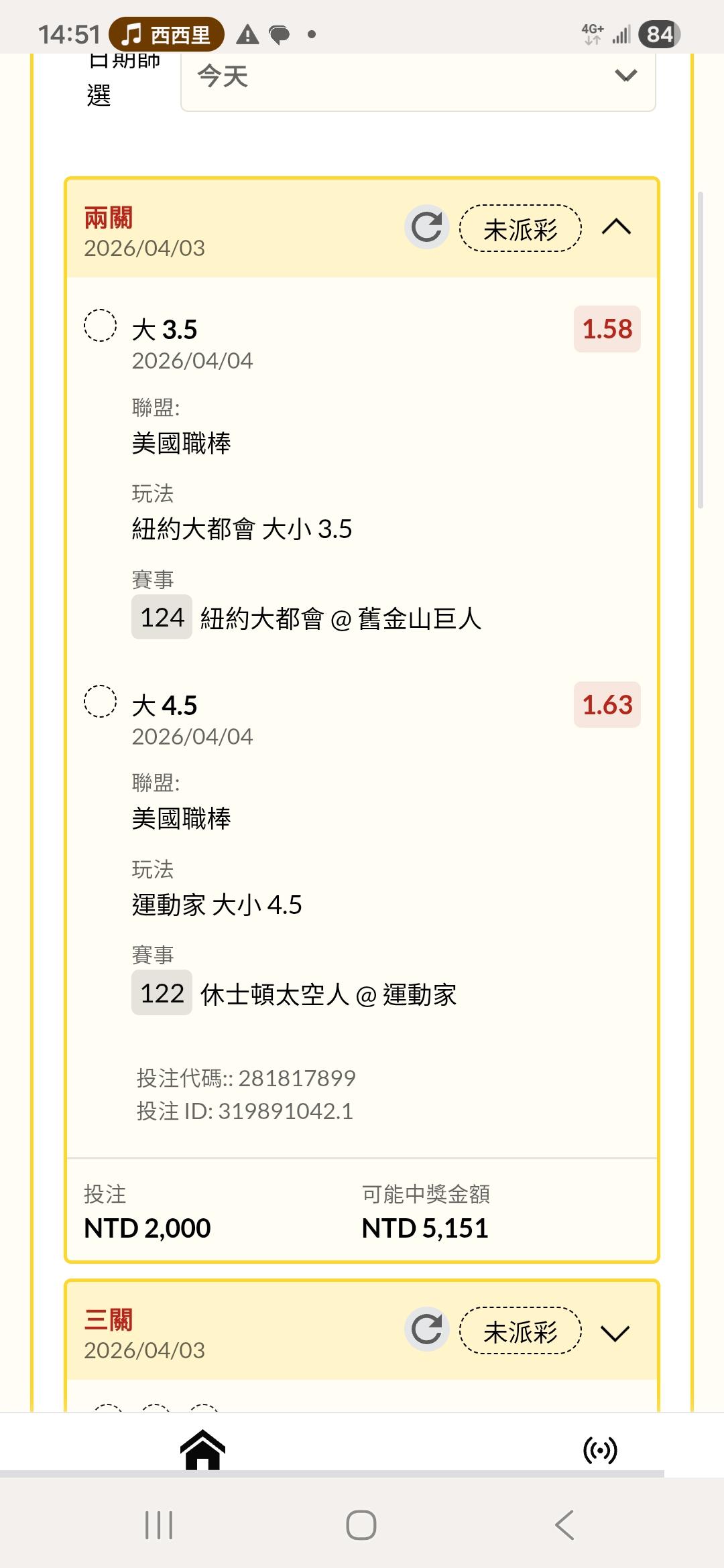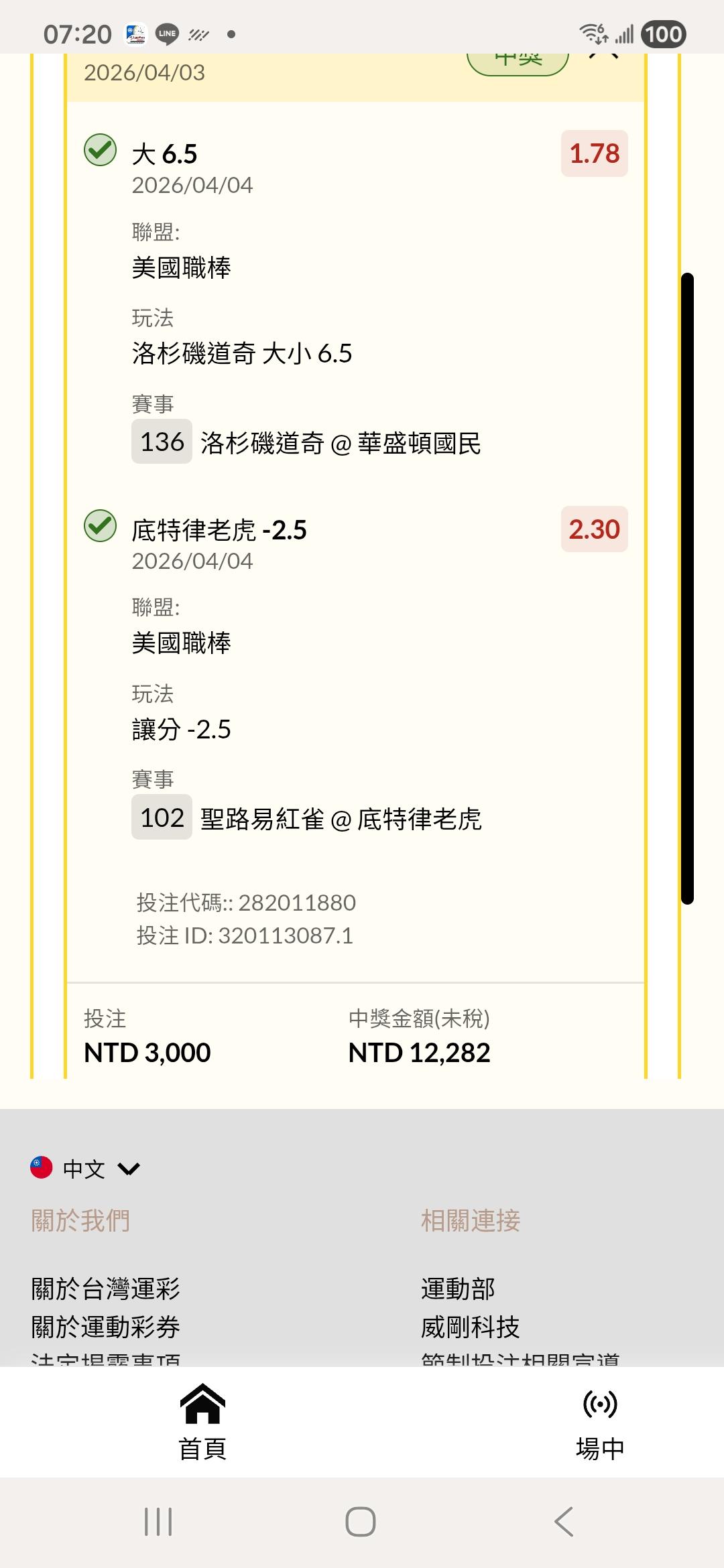 MLB >> 今天還能起舞嗎?昨天1550贏60倍