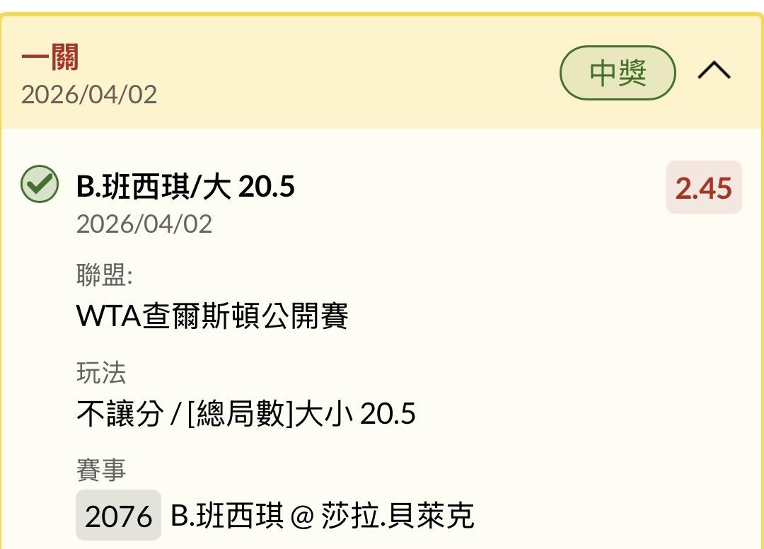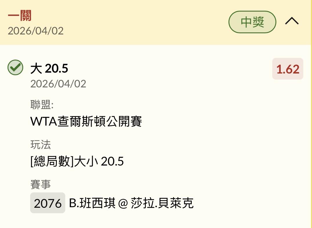 網球 >> 402+ WTA/23:00賽前/你敢跟嗎㈢