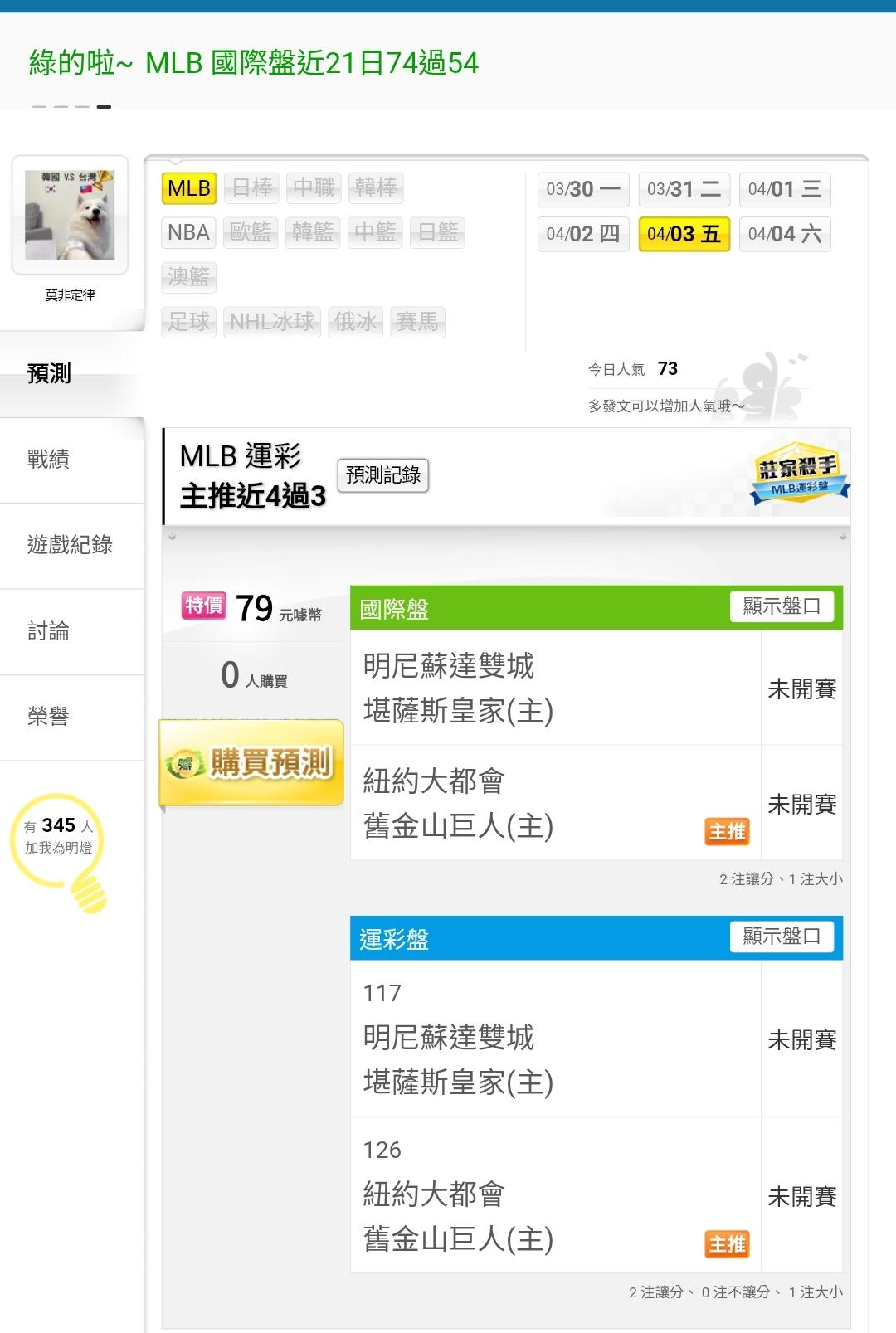>> MLB 運彩 主推近4過3