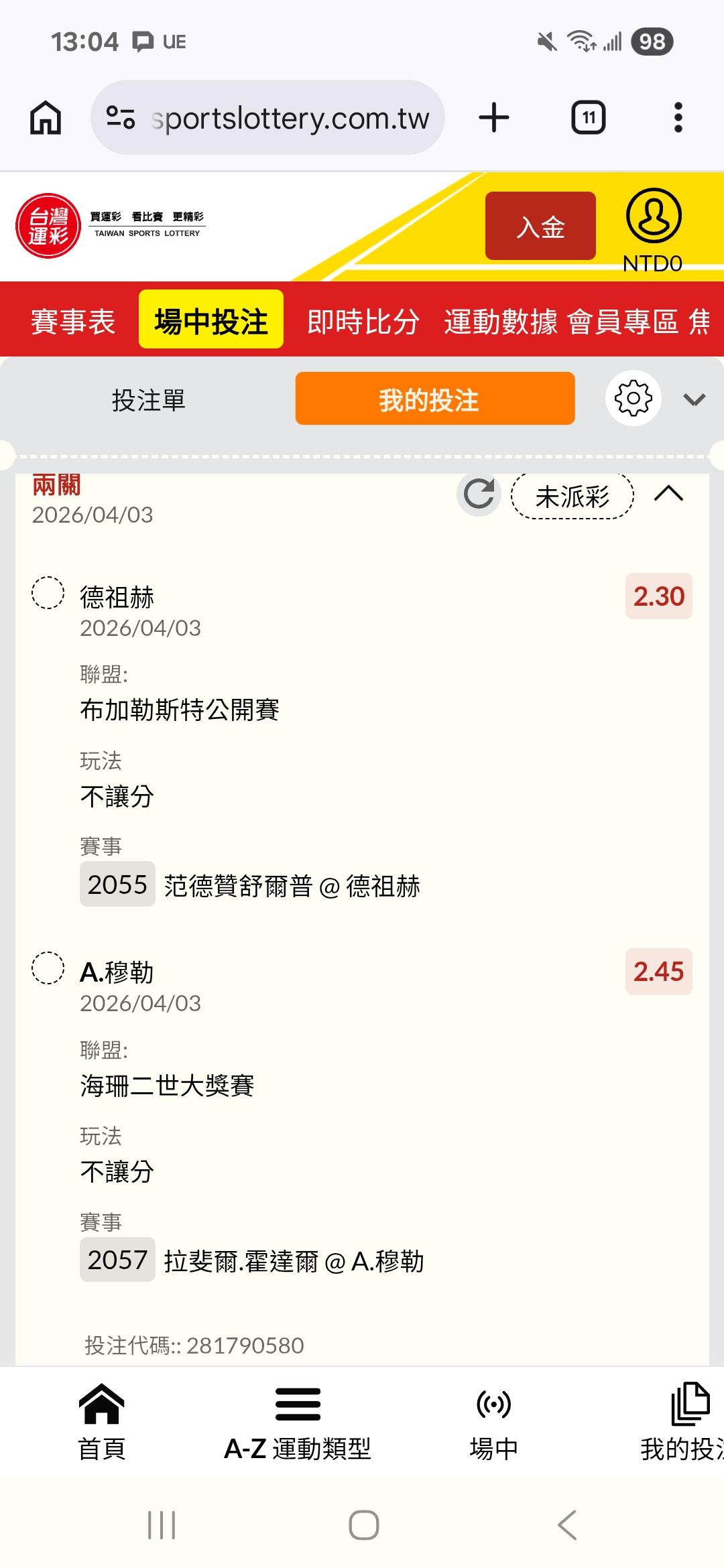 網球 >> 4/3 ATP、WTA 網球公開賽