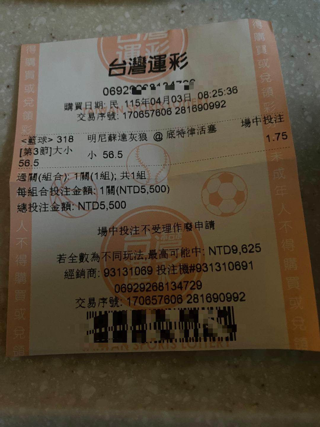 NBA >> 太晚起床了 第三節56.5小 先尻一張5500元1.75