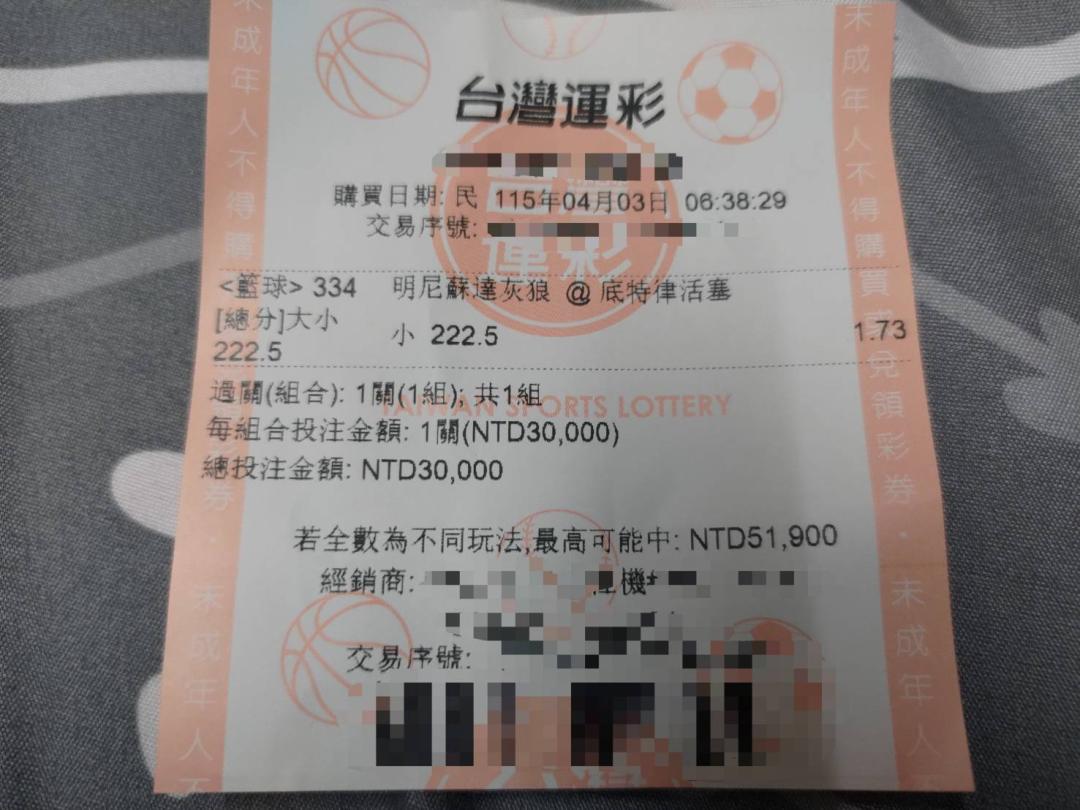 過關炫耀 >> 我開單關運彩,NBA222.5小分過盤啦!