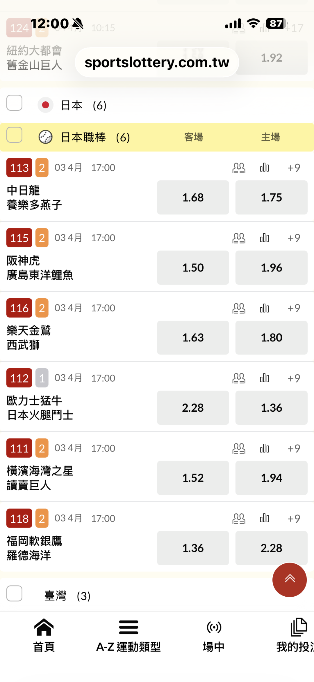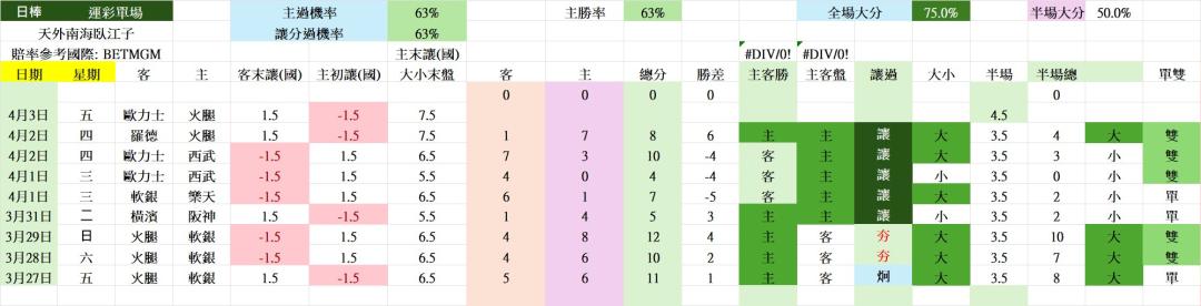 日本職棒 >> 詢問日棒運彩單場3/27~4/1 是那些場