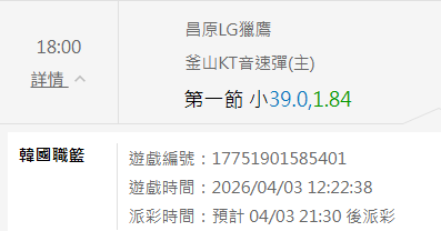 >> 4/03 韓籃推薦【國際主推信心度高】【小叮嚀有注數推薦】【免費場歡迎參考】