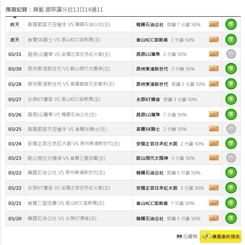 韓國職籃 >> 4/3韓籃國際讓分近13日14過11 昨天4/2雙盤2過2全過 持續保持穩定獲利高勝率