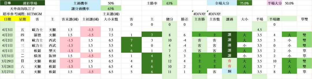 >> 4/3 日棒 運彩單場 歐力士 vs 火腿