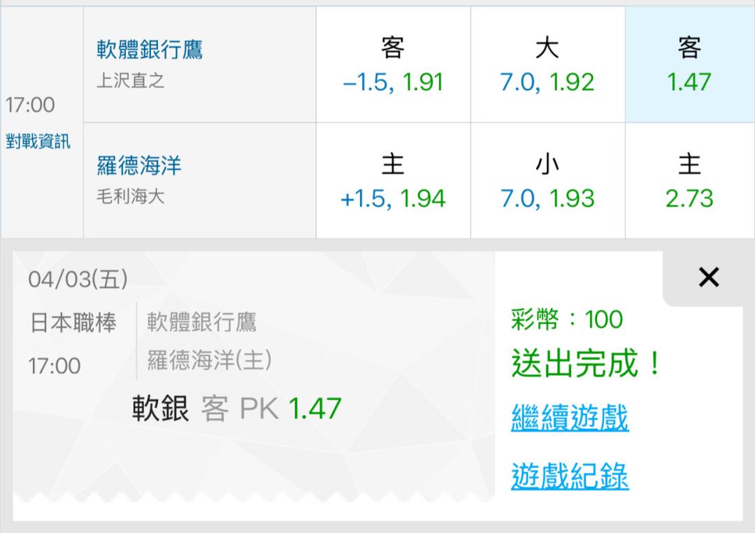 日本職棒 >> 4/3⚾️🌟🎯《日棒推薦》