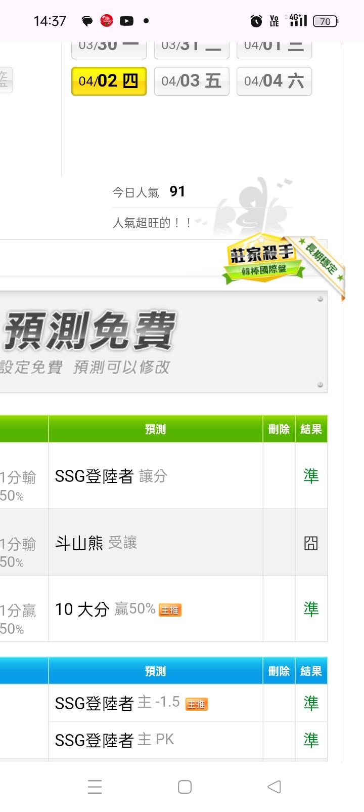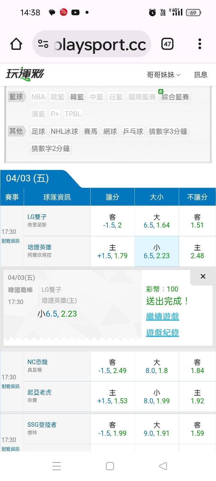韓國職棒 >> 昨天雙主推都贏錢,今天最看好的一隻輸贏就好🤩🤩🤩