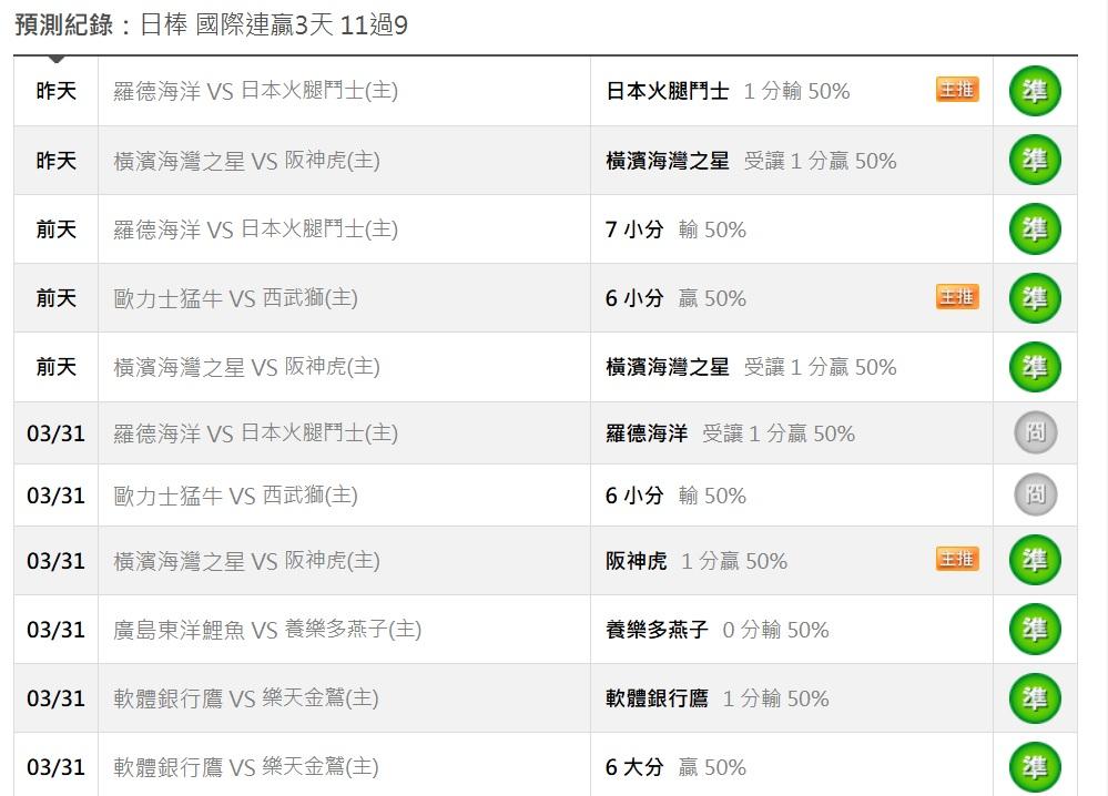 >> 日棒分享一場(國際 連贏3天 11過9,國際 主推連過4日)