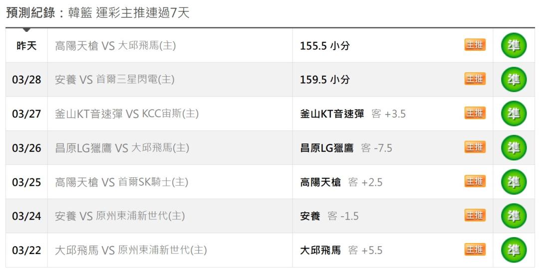 韓國職籃 >> [運彩主推 7連勝 大獲全勝]-[今天 高信心場]-有信心 拚運彩主推 8連勝