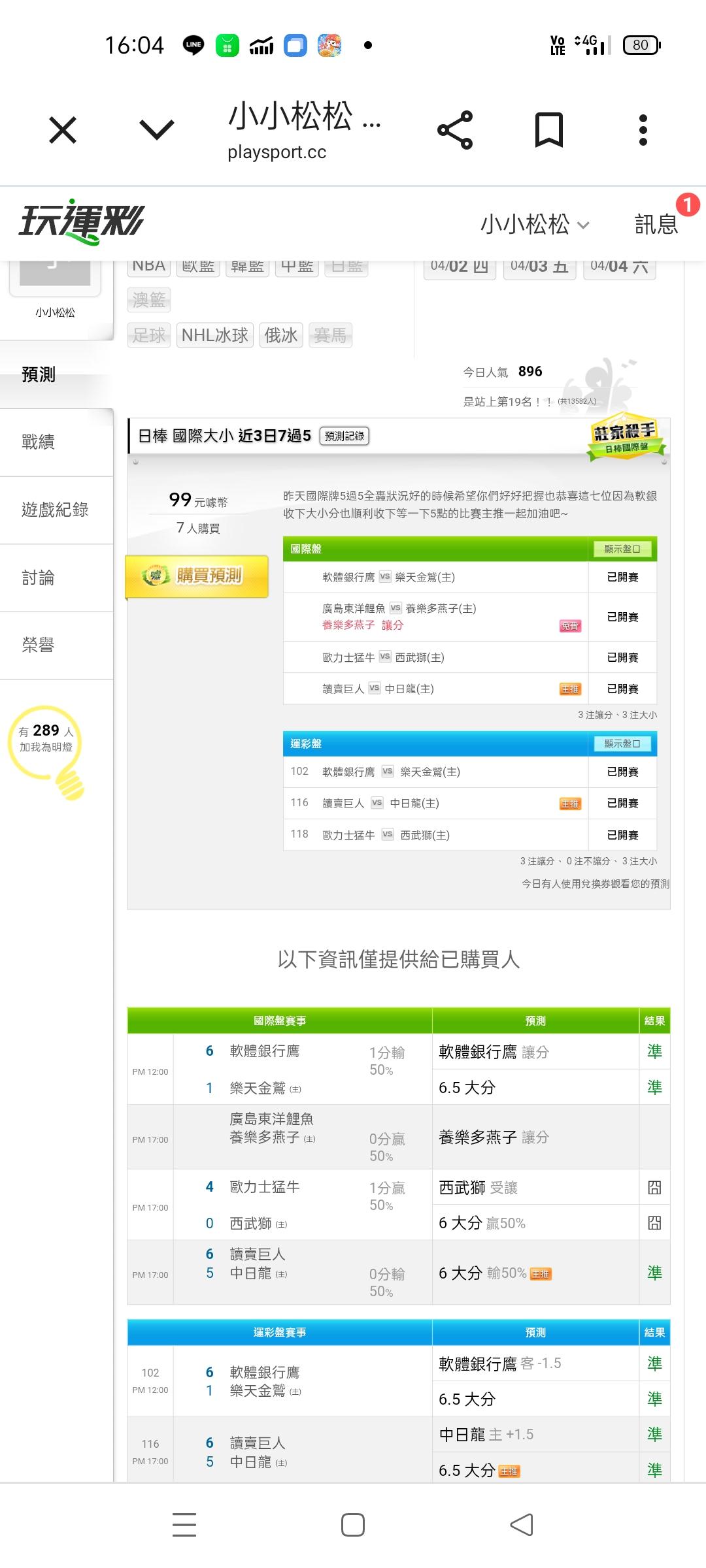 日本職棒 >> 剩不到一個小時就要開賽了大家一定要把握今天晚上一起領錢的機會今天我蠻有信心的兩個人相信的一起過盤吧