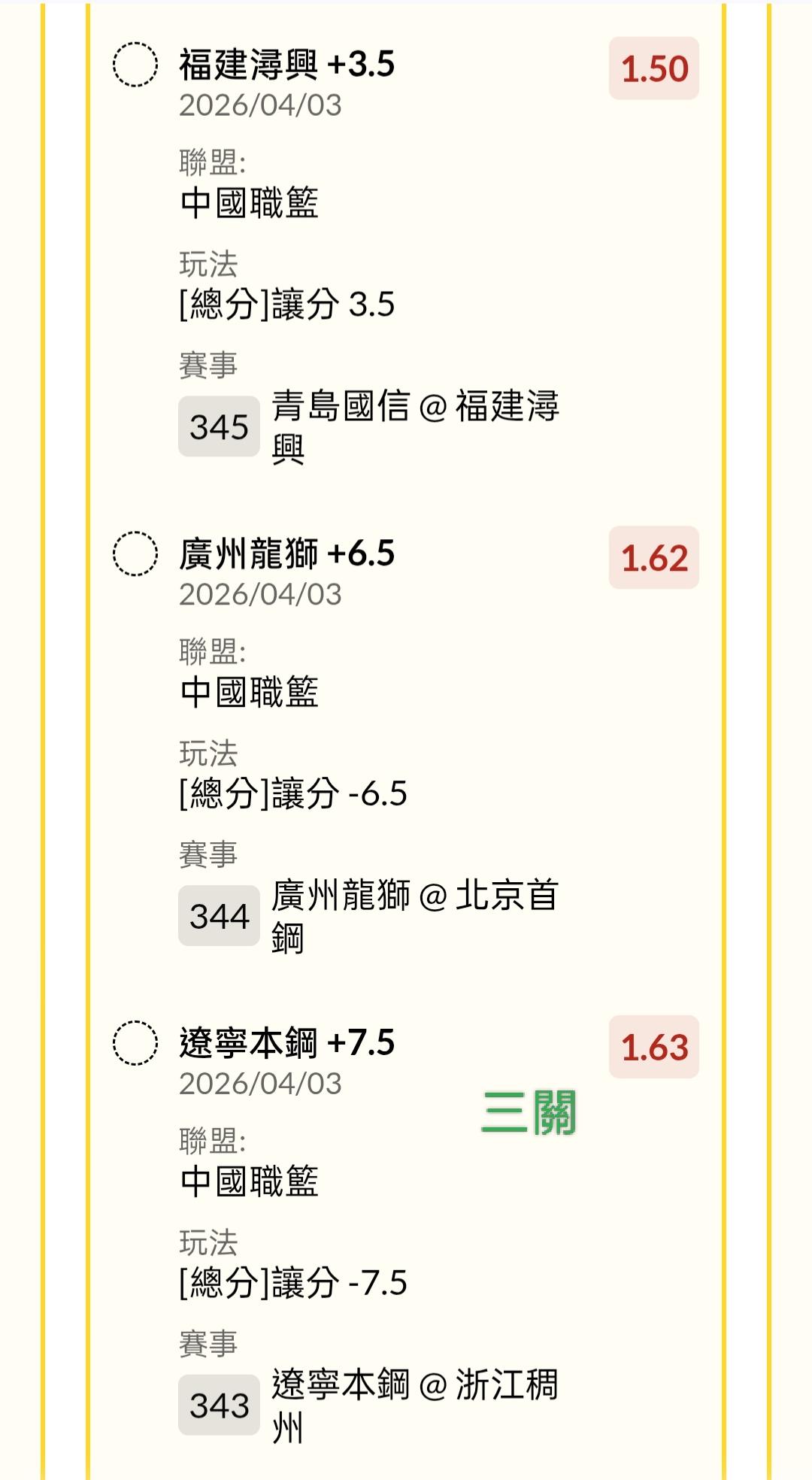 三關3×1