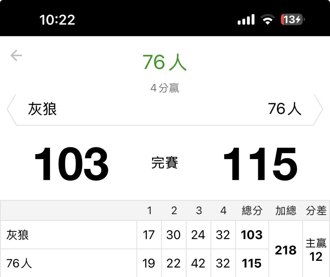 感謝大家支持,沒想到牛牛這麼不給力,灰狼的蟻人下半場沒打,不然很有機會的,有跟大家提醒別下大注希望有幫助到,這樣我們明天討回來!