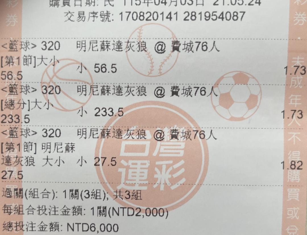 我買賽前灰狼獨贏 不知道會不會過⋯⋯