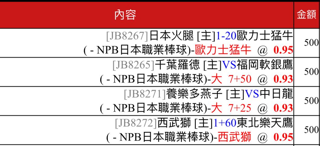主推 養樂多場大分 副推 歐力士受讓