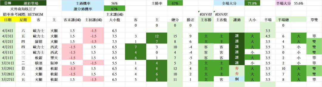 >> 4/4 日棒 運彩單場 歐力士 vs 火腿