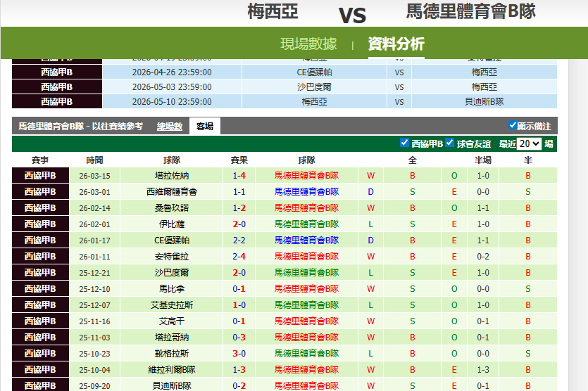 足球 >> 04/04日乙丙賽事分享