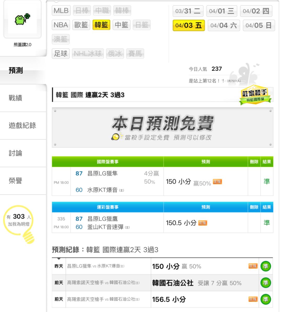 韓國職籃 >> 4/4國際連贏2天 3過3 💰信心繼續連莊💰特價沒了