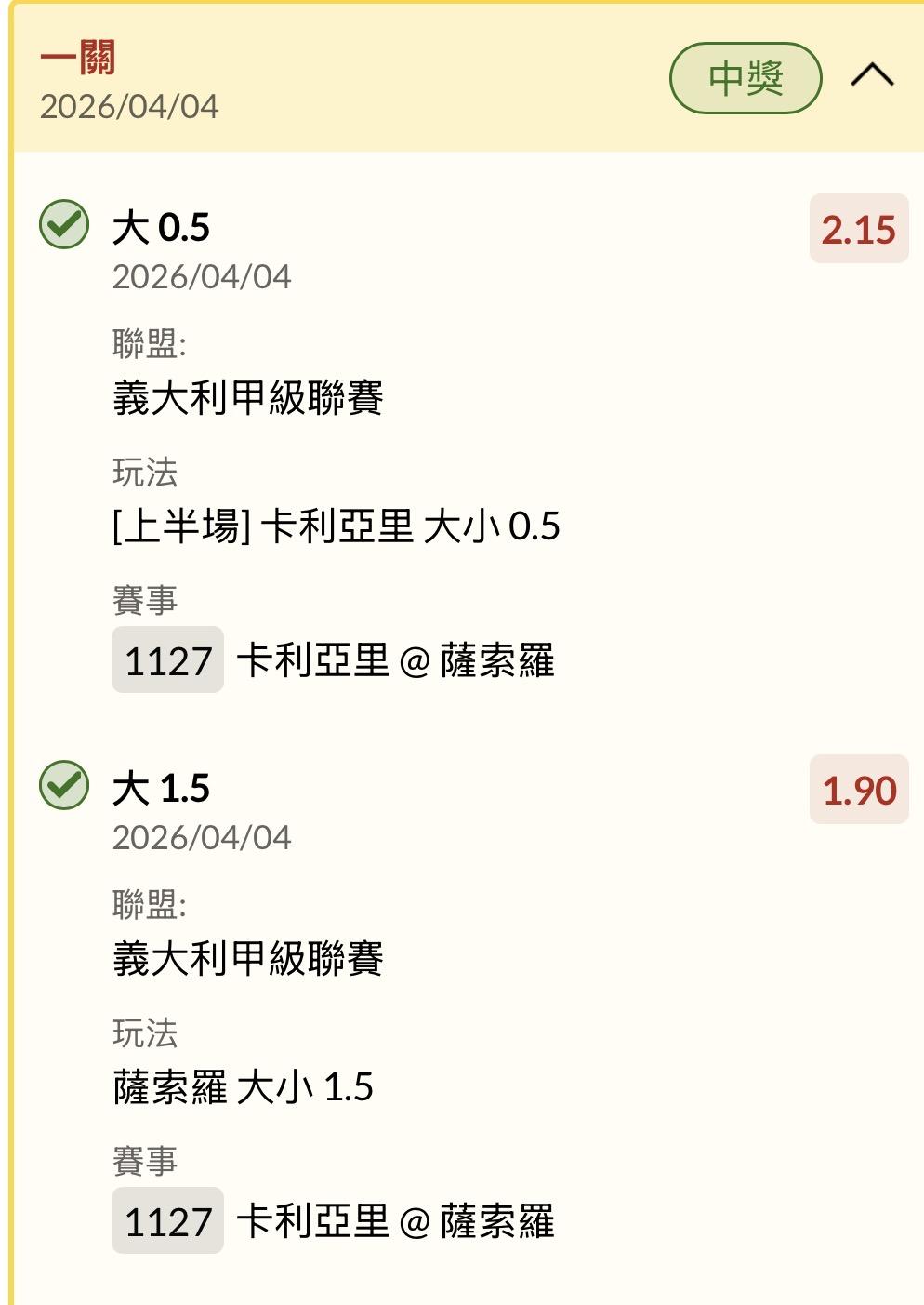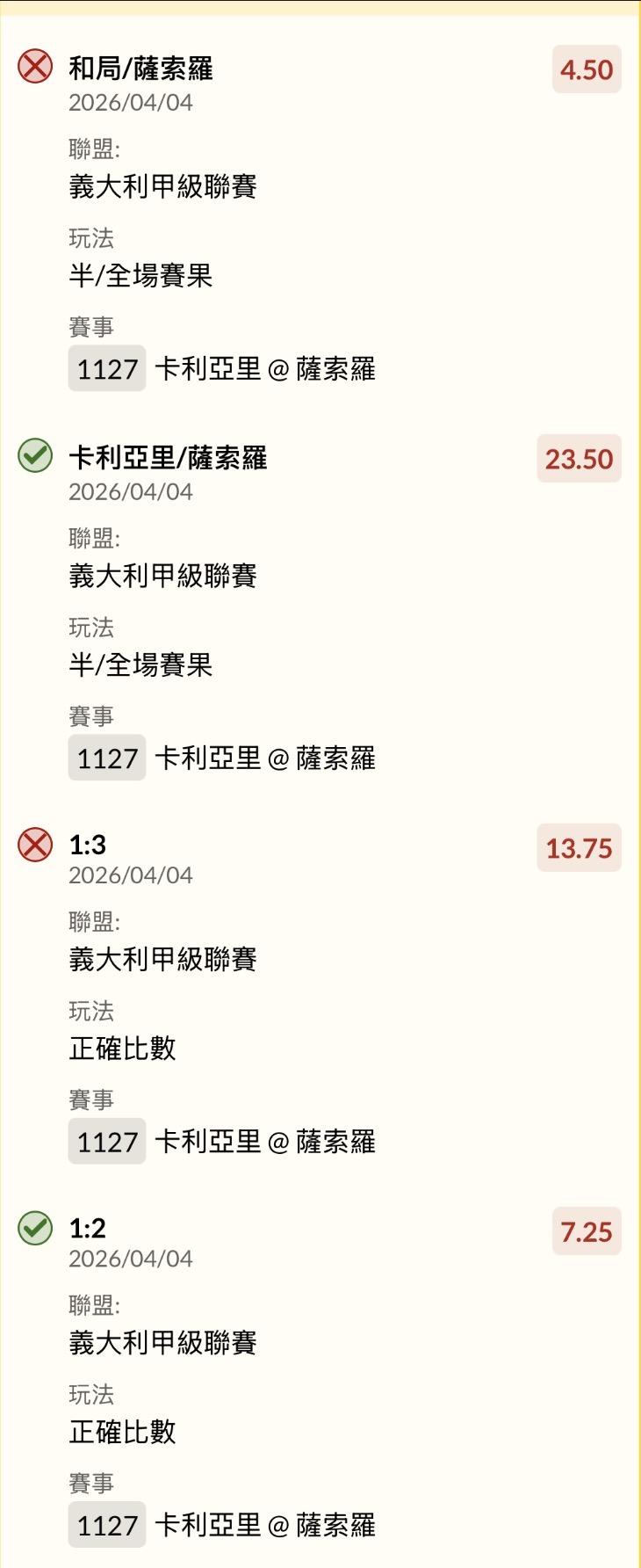 足球 >> 4/4今日所有場中