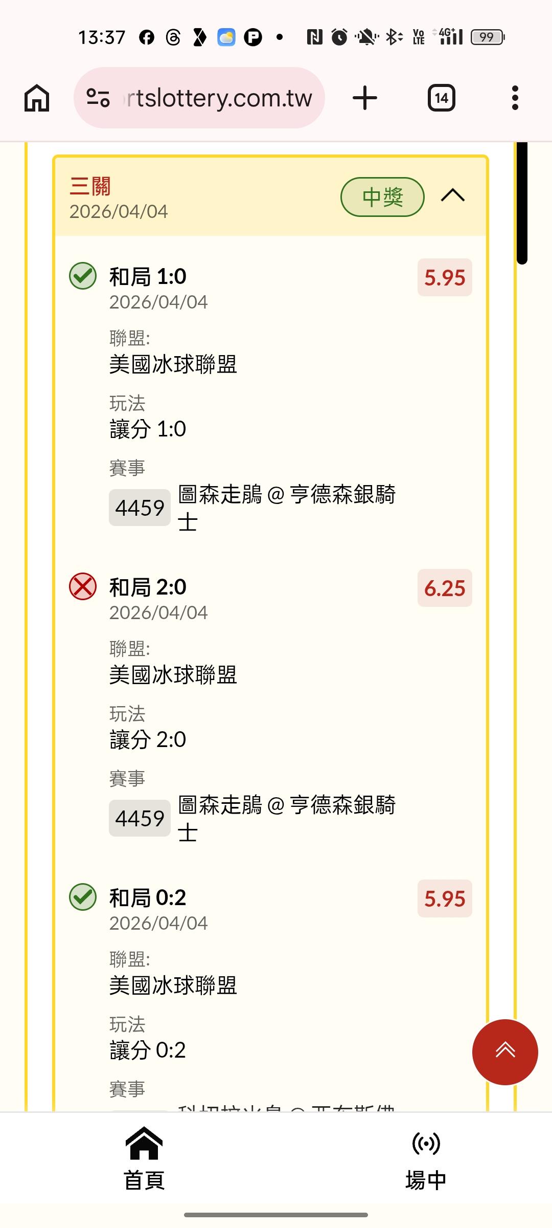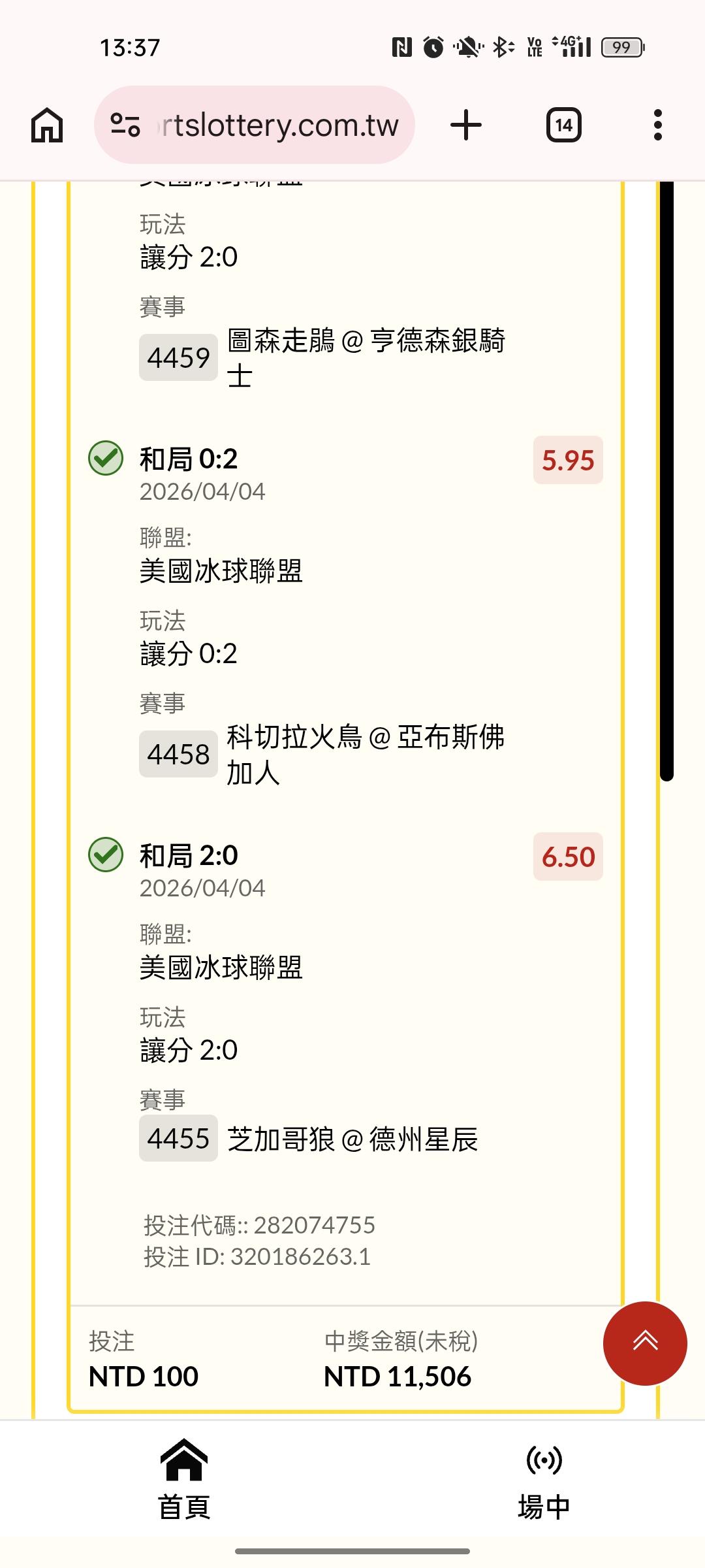 過關炫耀 >> 冰球勝分差3*1......230倍
