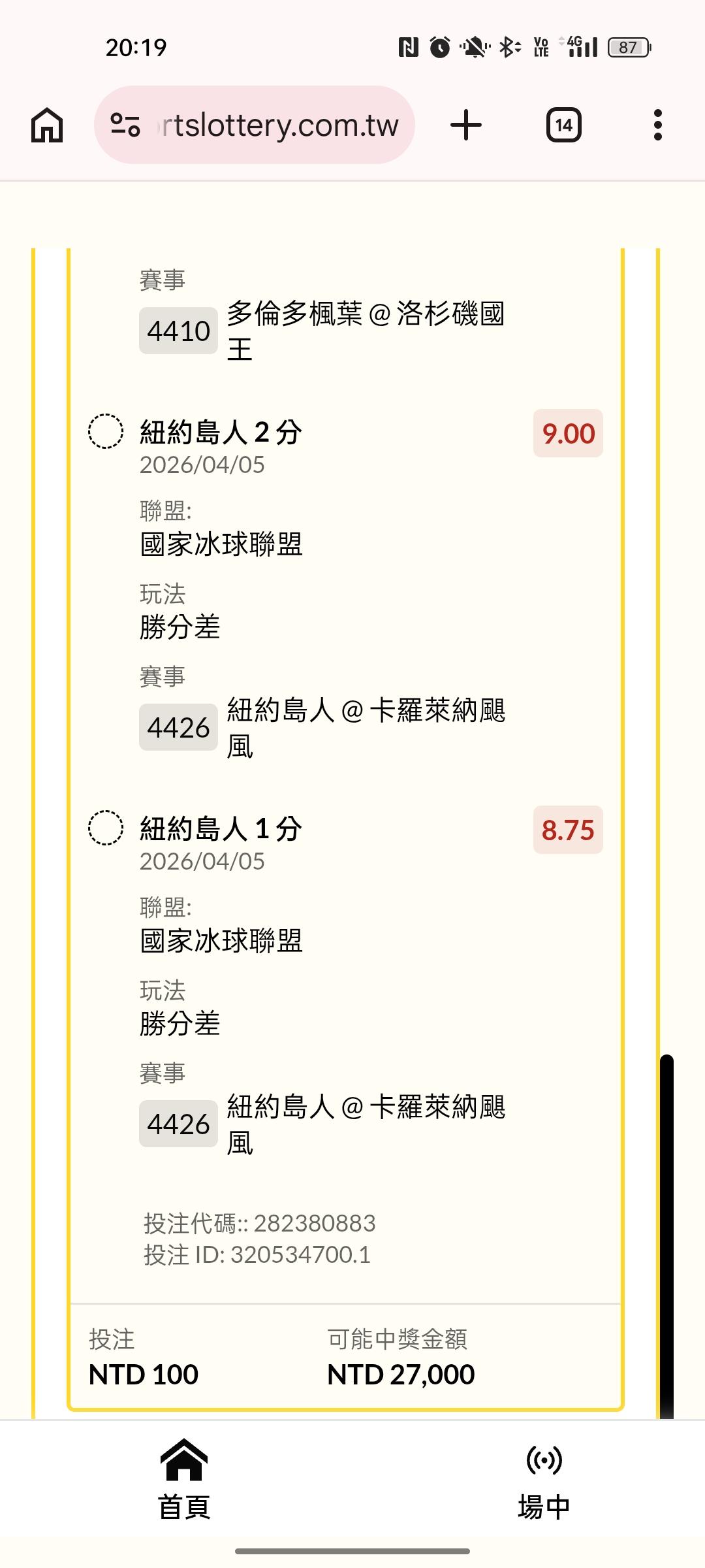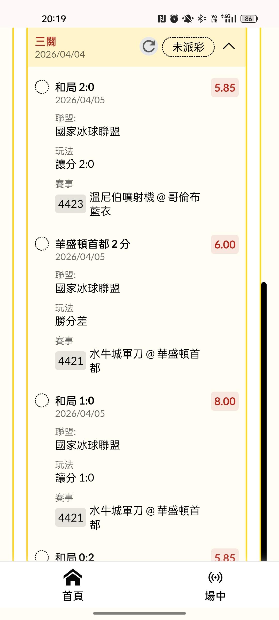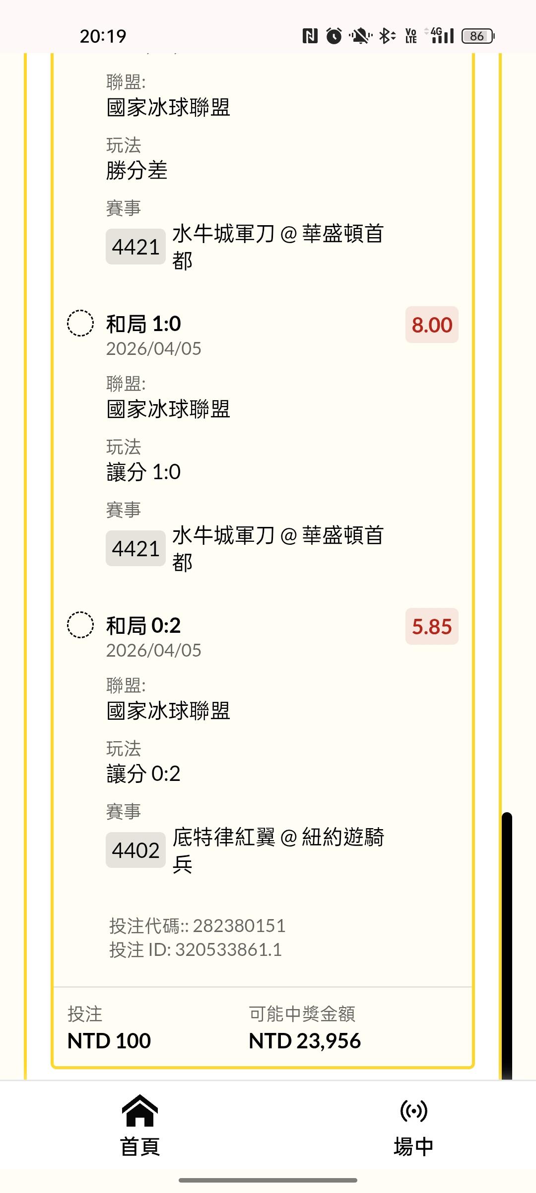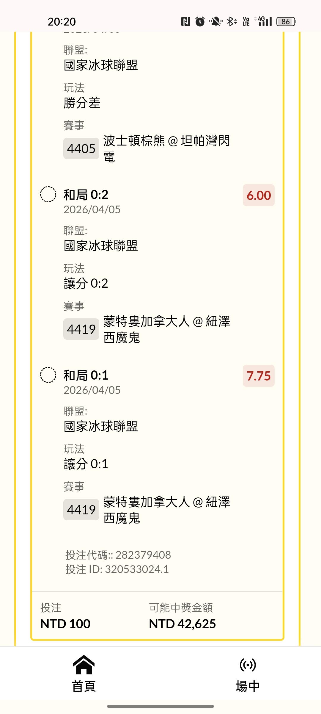 過關炫耀 >> 冰球勝分差3*1......230倍