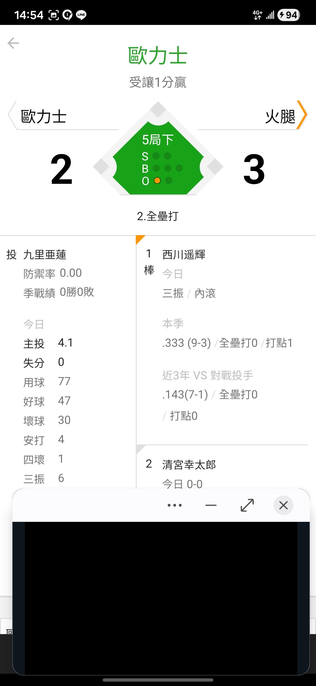 >> 歐牛五上滿壘不得分,火腿三分彈教育